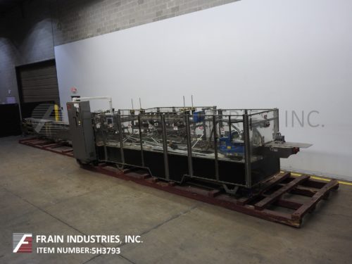 Back to All EquipmentBivans, model Vertuck, semi-automatic, continuous motion, vertical, hot melt glue cartoner. Rated up to 120 cartons per minute – depending on materials application and operator dexterity. Equipped with (3) chains adjustable set on 6" centers, carton size: 7/8" to 5" in length x ¾" to 3½" in width x 2¼" to 10" in depth. Equipped with 24" long blank carton magazine with recipacting single arm vacuum pick and place, Nordson hot melt glue system, 24" long load area each side, 36" long x 3" wide discharge conveyor. Control panel with touch screen HMI.