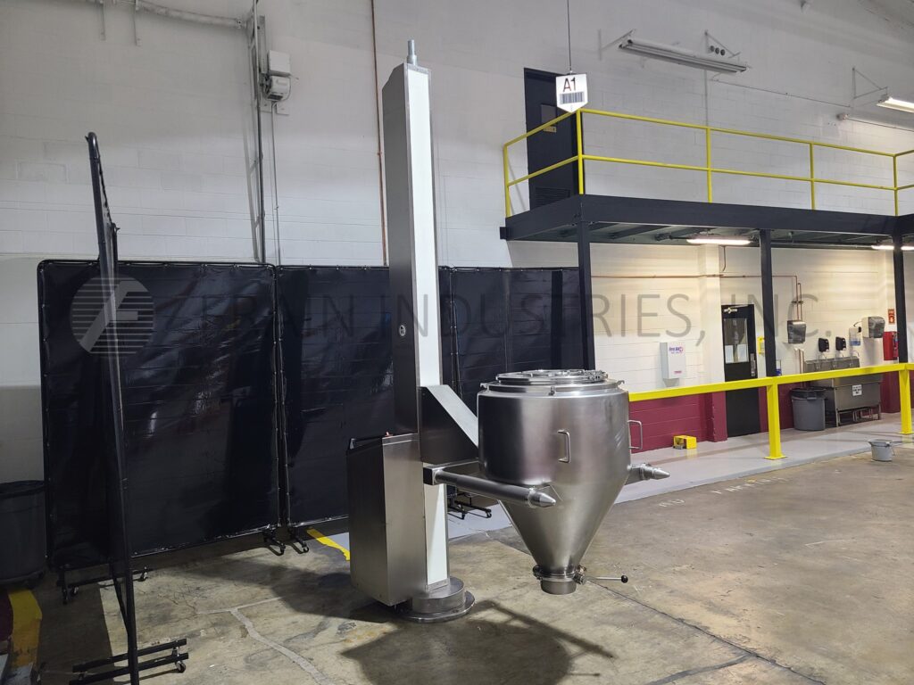 Back to All EquipmentBohle, Model HS800, rotating column tote lift. Rated to a maximum capacity of 1763 lbs. Equipped with a two prong fork lift set on 36" centers with a maximum lift height of 108".