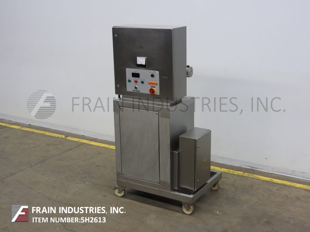 Back to All EquipmentBurdosa, Model GR80, inline, continuous, dynamic loop mixer. Rated from 60 to 92 gallons per minute – depending on materials, application and machine configutation. Equipped with an 8" OD x 16" long mixing chamber with a low pressure jacket, 3"OD / 2"ID seated bevel style primary charge port, 5½"OD / 1½"ID circular flange style secondary charge port and 3"OD / 2"ID seated bevel style discharge port. Mixer rotor powered by a 5.3 hp drive with variable speed controls.