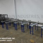 Back to All EquipmentClimax, Model C3, automatic, intermittent motion, 6 lane, side load, hot melt glue cartoner. Rated up to 15 cartons per minute – depending on materials, application, pack pattern and machine configuration. Capable of running 4 packs, 6 packs, 8 packs of 12oz and 16oz cans and 12 packs, 15 packs, 18 packs and 24 packs of 12oz cans with proper change parts. Equipped with (6) 16" wide x 60" long container feeder chutes to container orientation laner with (1) 6" wide x 282" long conveyor, (1) 6" wide x 190" long conveyor and (1) 6" wide x 96" long conveyor, (1) 18" wide x 98" long infeed conveyor, automatic blank carton magazine and pick n place, carton collation section with air knife carton open assist, set on 15" centers with 2" wide x 4" long lugs, single arm loader, Nordsen ProBlue hot melt glue system, minor / major flap closers, compression section, seko gauges and safety guarding. Control panel has A/B PLC with A/B panel view controls with A/B variable speed controllers. Mounted on carbon steel frame with two part stainless steel epoxy paint primer and finish coat with leveling legs.
