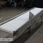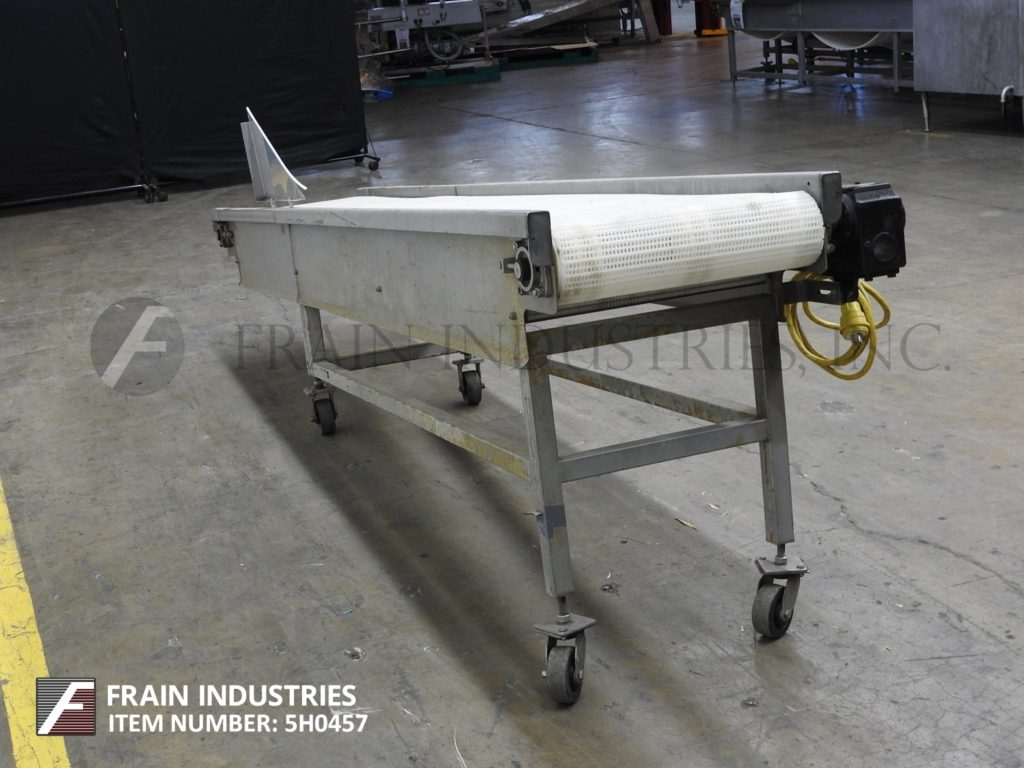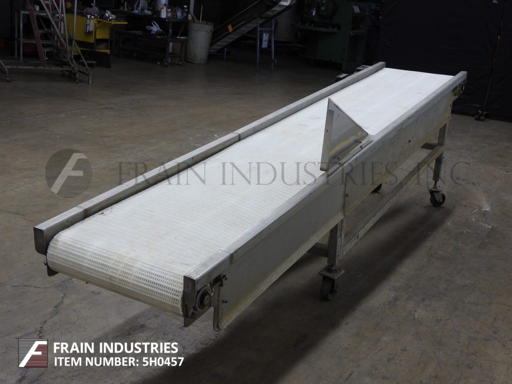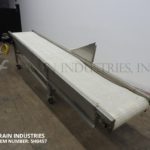 Back to All Equipment24" wide x 148" long stainless steel table top conveyor. 24" wide and 148" long Intralox style belt has an infeed of 23" and discharge of 42". Equipped with a ½ Hp drive and mounted on casters.