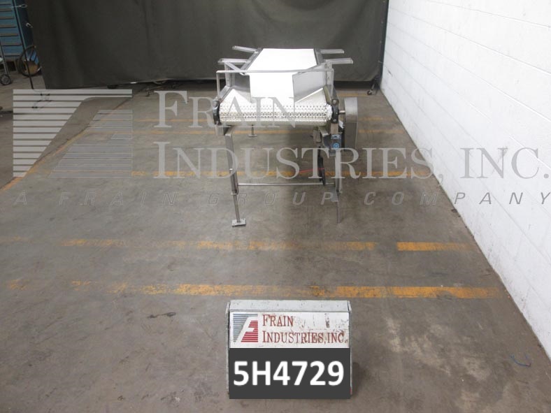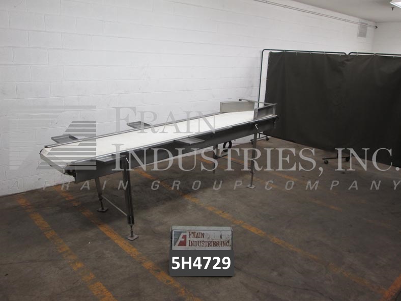 Back to All Equipment23½" wide x 126" long stainless steel table top conveyor. 23½" wide and 126" long flexlink style belt has an infeed height of 35" and a discharge height of 41". Equipped with a ¾ Hp drive with an infeed / discharge range of 32" – 41".