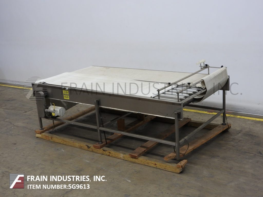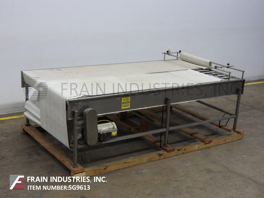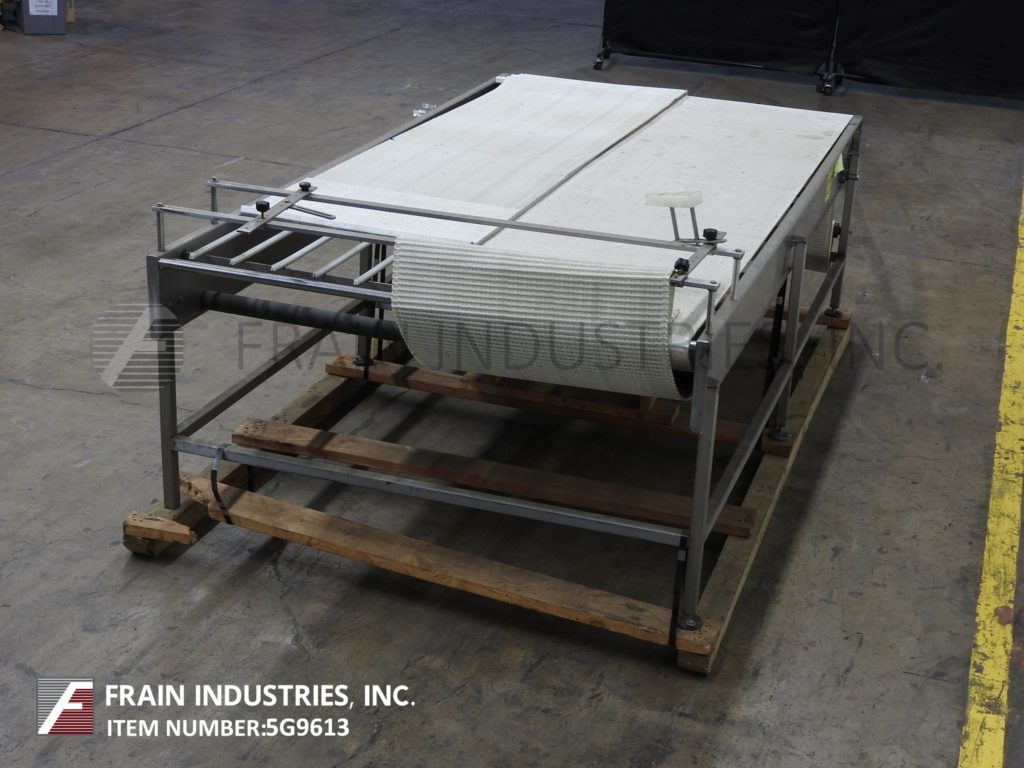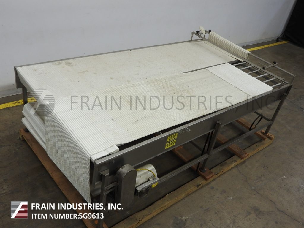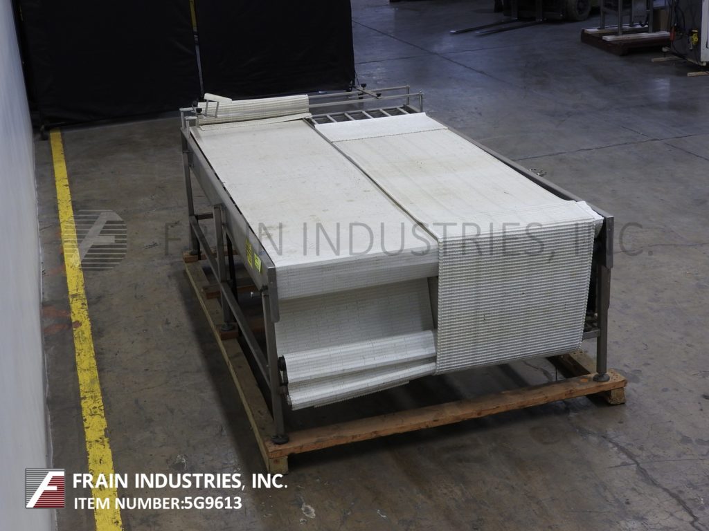 Back to All Equipment60" wide x 120" long stainless steel belt conveyor. (2) 30" wide and 120" long Intralox style belts have an infeed / discharge height of 35". Equipped with a 1½ Hp drive and mounted on (6) legs.