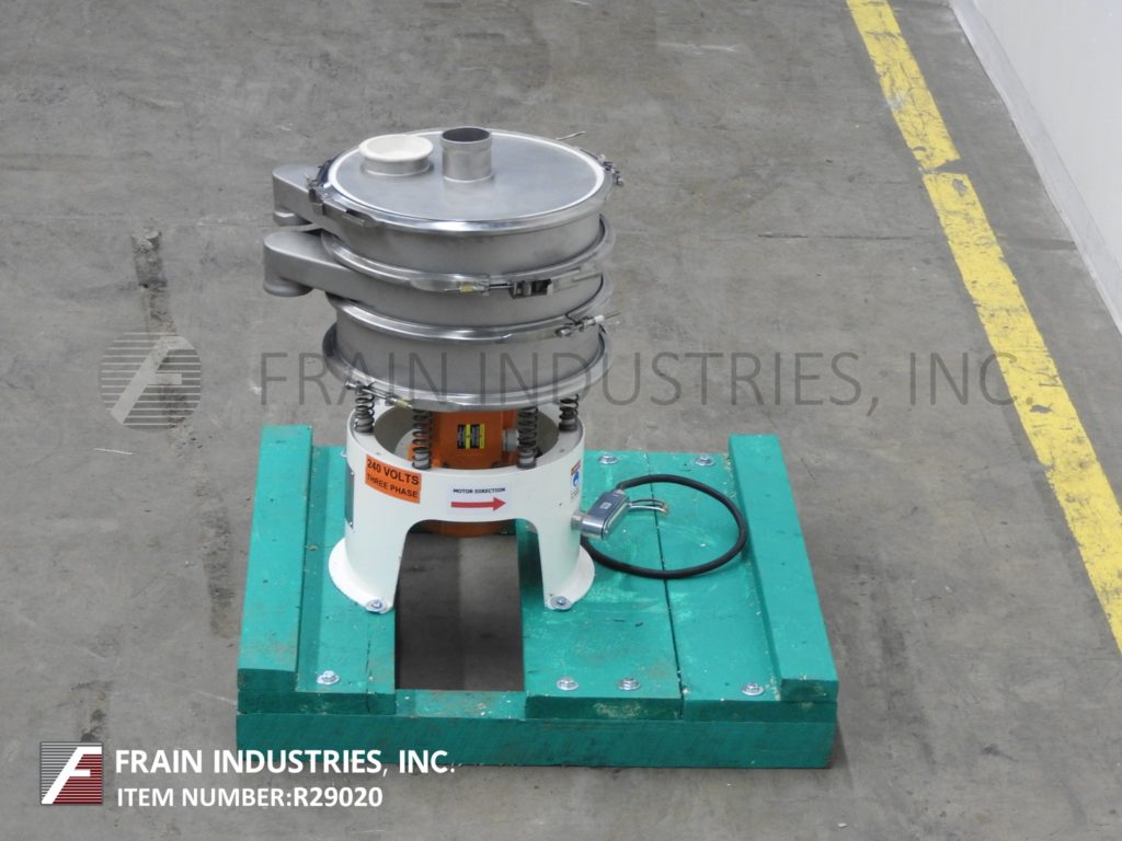 (2) 18" Stainless mesh screens, 3" tall lower Table frame, 304 stainless steel with a 3" diameter discharge spout 3" tall middle Distributing frame, 304 stainless steel with a 3" diameter discharge spout 3" tall upper Spacing frame, 304 stainless steel with a 3" discharge spout 18" Dust Cover Kit with 304 stainless weldment, 3" INLET, (1) inspection opening, sealing gasket and clamp band