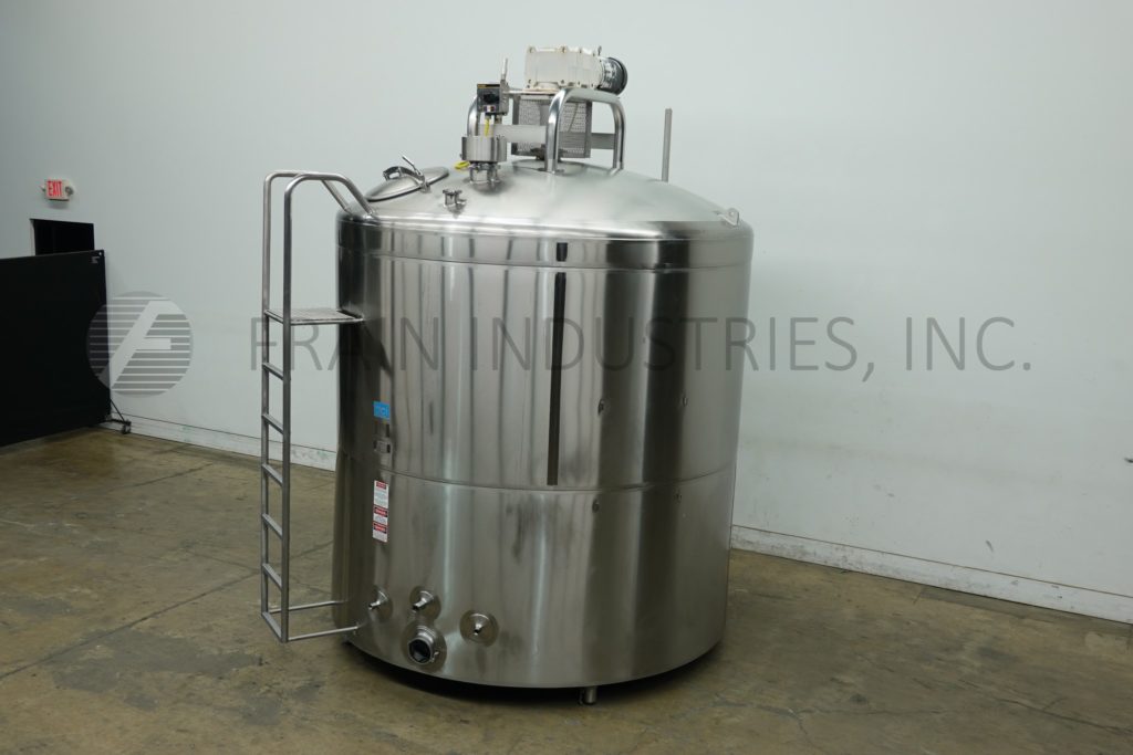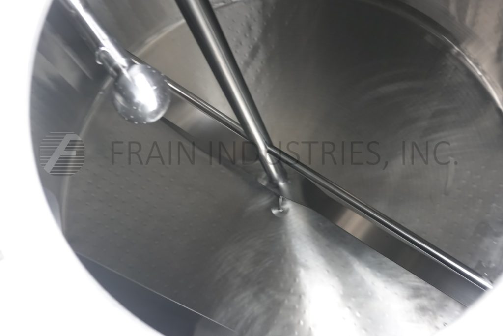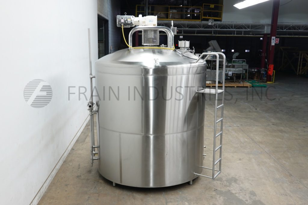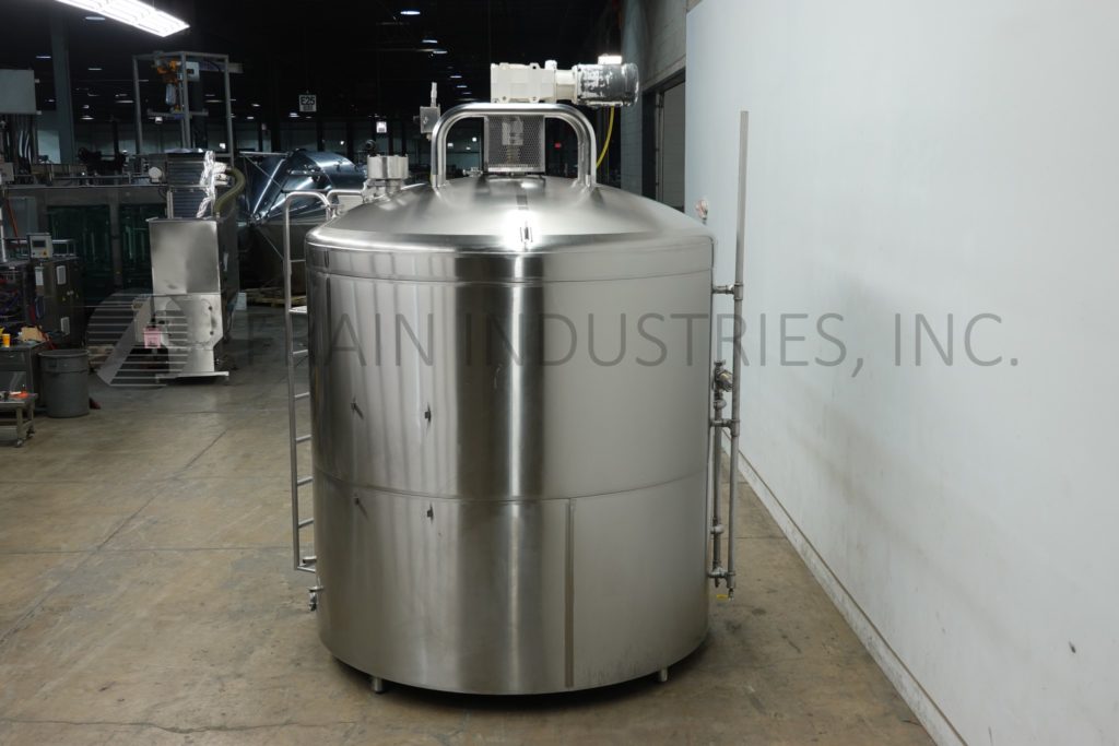 Back to All EquipmentDCI, 2,500 gallon capacity, 316 stainless steel jacketed and insulated process tank. Vessel dimensions: 96" diameter, 88" straight wall, with a 18"ID manway. Equipped with lift up / bolt down covers, top mounted 5 / 2½ HP bottom sweep agitation and (2) CIP spray balls supplied by a 3½"OD / 3" ID Tri-Clamp fitting. Slant bottom has 3½" OD / 3" ID bottom discharge with 8" ground clearence.