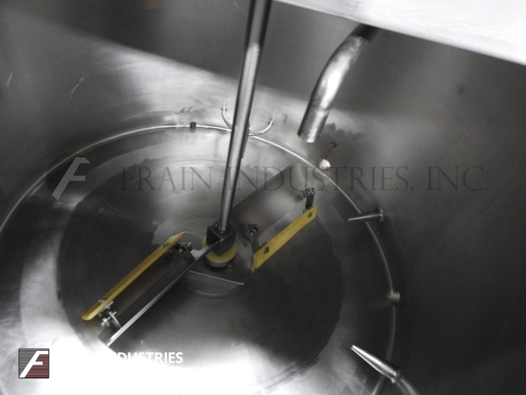 Back to All EquipmentDeLaval, 200 gallon, 316 stainless steel insulated mixing tank with 50 PSI BOTTOM jacket. Vessel Dimensions: 45" diameter with a 32" straight wall. Equipped with top mounted bottom scrape agitation powered by a 1 hp drive, lift up covers, slant bottom and a 2½" OD / 2" ID tri-clamp bottom side discharge with 20" ground clearance. Mounted on (4) tubular legs.