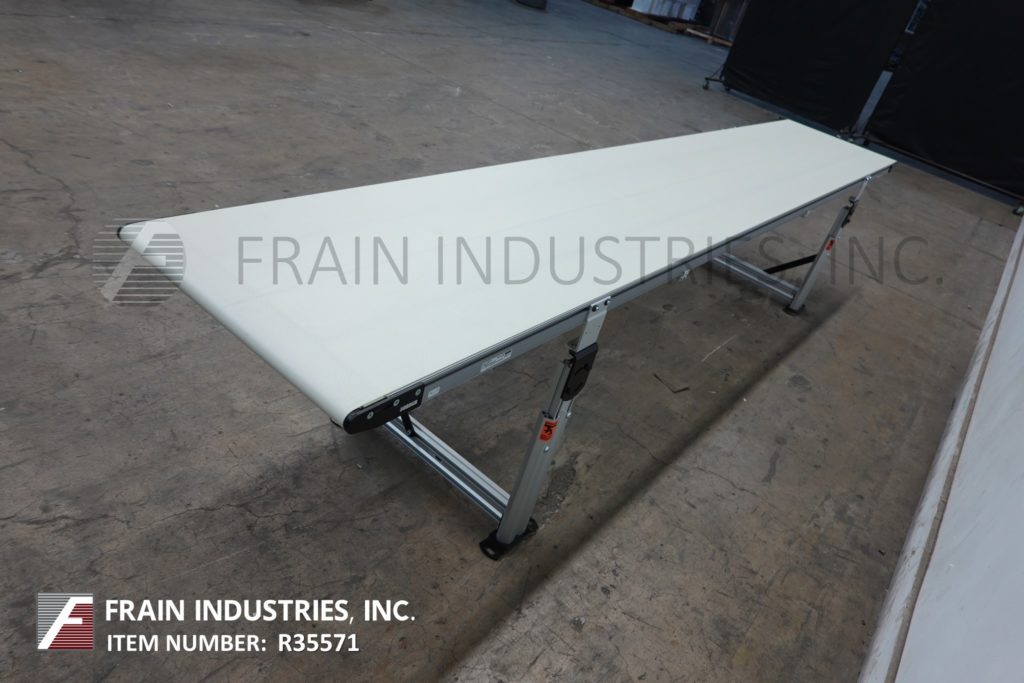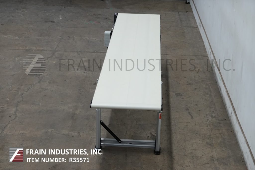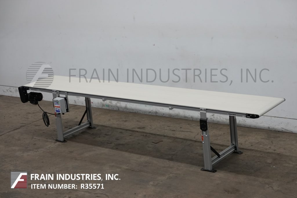 Back to All EquipmentDorner, Model 2200, aluminum frame belt conveyor. Equipped with a 24" wide x 144" long belt with a 24" to 36" infeed / discharge range and variable speed controller.
