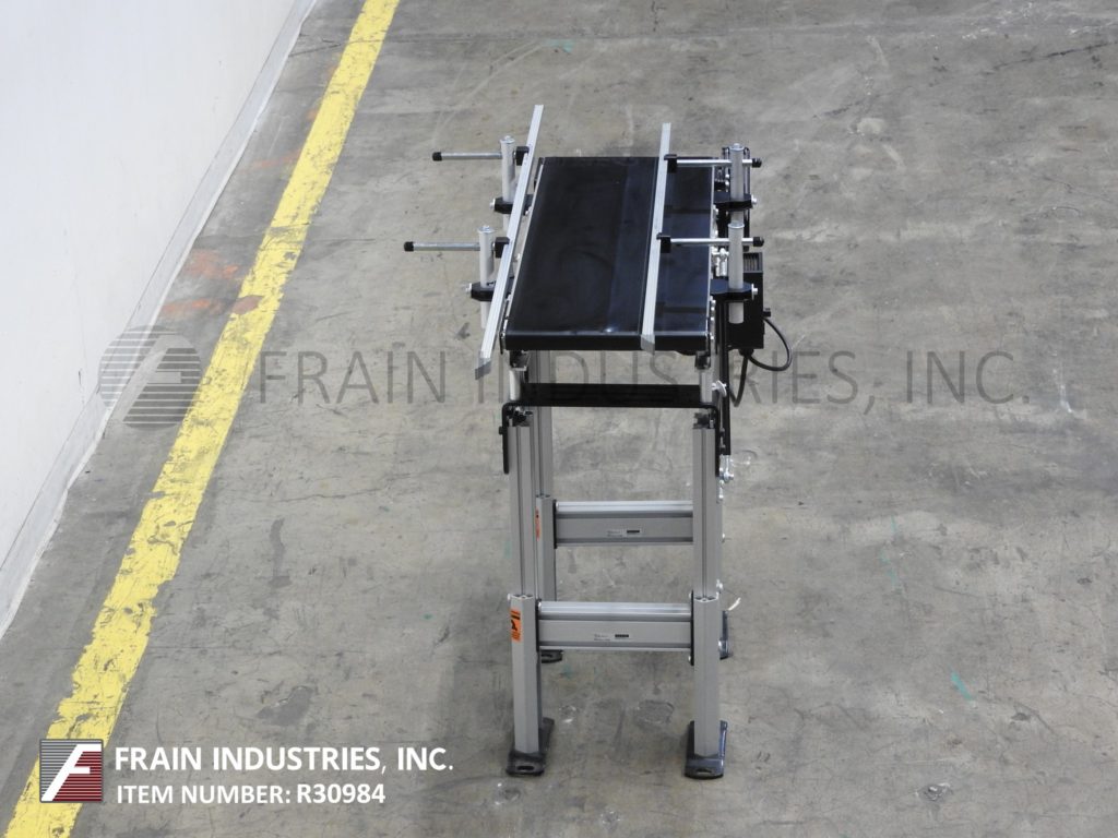 Back to All EquipmentDorner, Model 2200, aluminum frame belt conveyor. Equipped with a 12" wide x 36" long belt powered with a 28" to 36" infeed / discharge range and variable speed controller.
