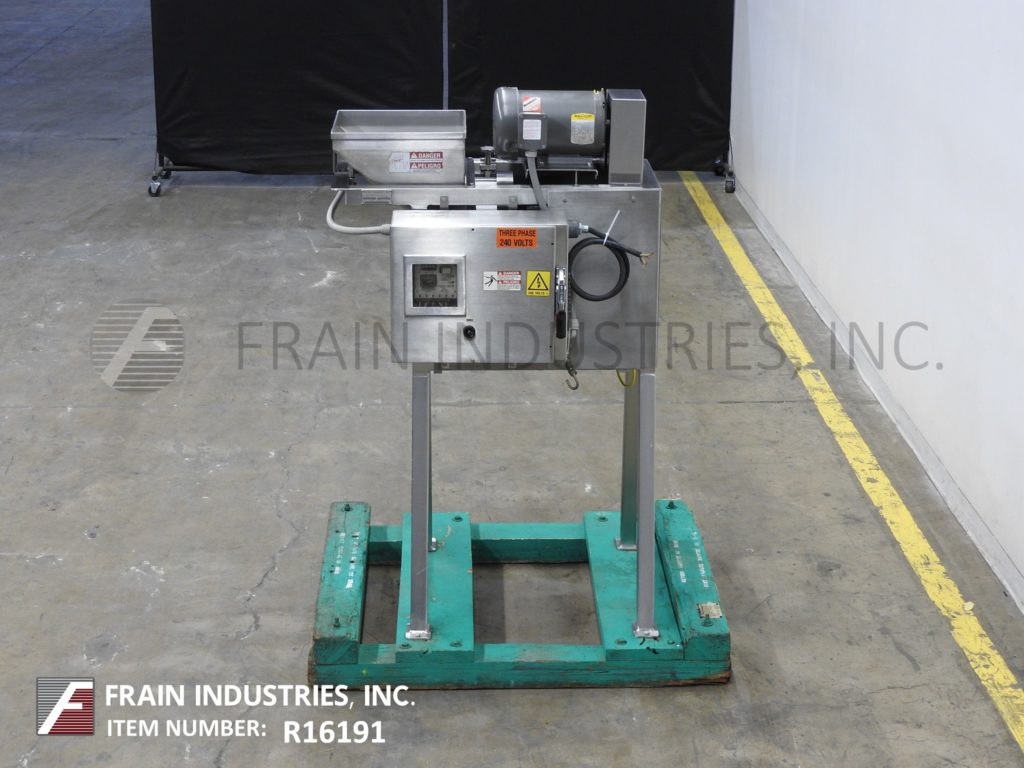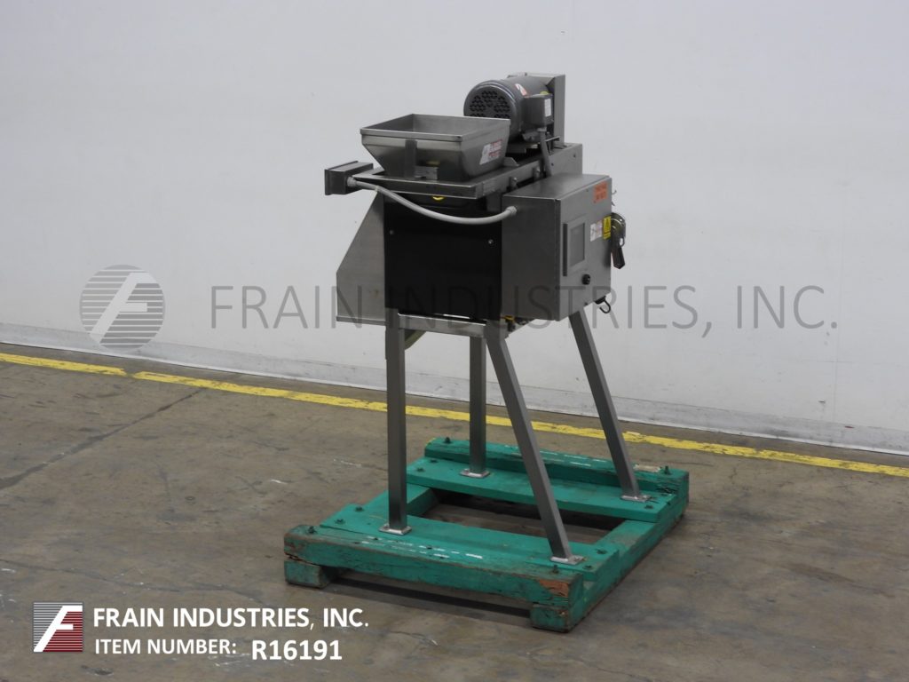 Back to All EquipmentUSDA approved dicer speeds vary depending on type of product used. Unit is capable of slicing 8000 Lbs/Hr of Pineapple at high speeds and 5000 Lbs/Hr of Macadamia nuts at high intermediate speeds. Unit will cut pieces as small as 1/16" X 1/8" X 1/16" and as large as 3/8" X 1/2" X 3/4". To cut different size pieces change parts are needed. Last running Mozzarella cheese in cubes. Unit is all stainless steel USDA approved. Change parts required to accommodate size range.