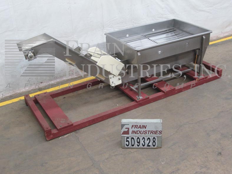 Back to All EquipmentStainless steel, inline cleated feeder with hopper. Equipped with 20 cu ft hopper, 14" wide cleated conveyor, 47" discharge, 10 by 1-1/2" cleates on 14 centers. Mounted on stainless steel frame wtih casters.