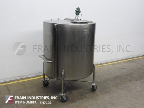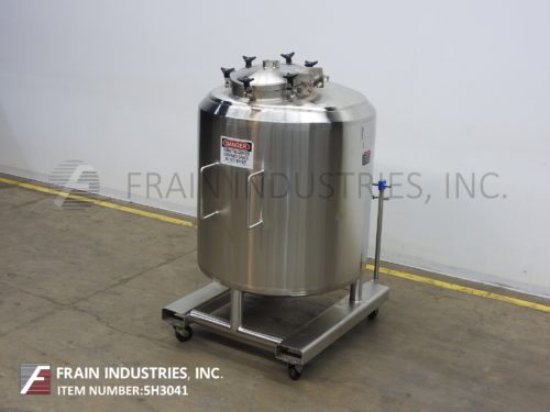 Back to All EquipmentFeldmeier, 75 gallon capacity, 316 stainless steel single wall tank. Vessel dimensions: 30" diameter x 28" deep with 24" straight wall. Equipped with dome top, 16" man way with flip up / clamp down cover, CIP spray ball supplied by a 2"OD / 1½"ID Tri-Clamp fitting, (1) level sensor port, (1) temp probe port and (1) flush mount sensor port. Slant bottom has 2½" OD / 2" ID Tri-Clamp style bottom discharge with 11" ground clearance. (Level Sensor, temperature probe and flush mount sensor not included)