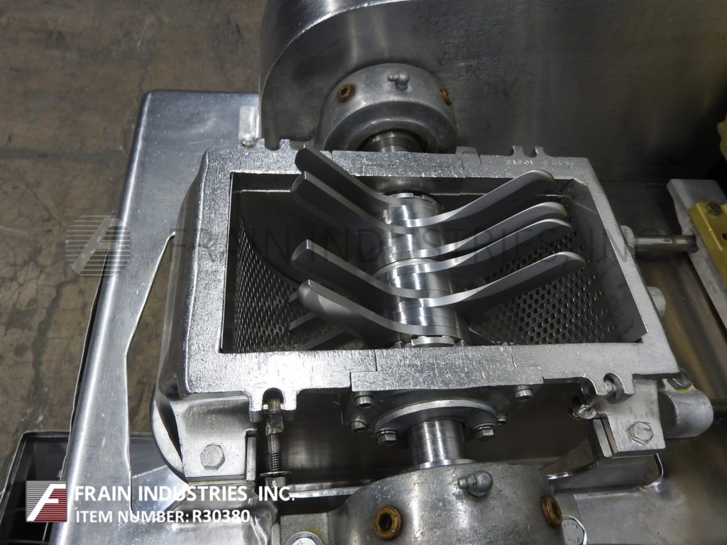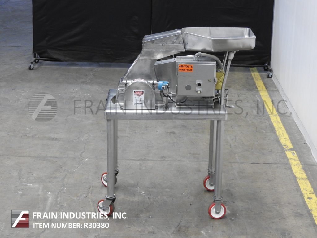 Back to All EquipmentFitzmill, Model DAS06, stainless steel hammer mill with pounds of product per hour – depending on materials and application. Equipped with 20" wide x 20" long x 4" deep feed pan, (16) fixed knife / impact blades and 15" x 5" discharge with 32" of ground clearance. Mounted on (4) leg stainless steel frame with casters.