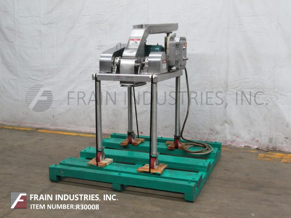 Back to All EquipmentFitz mill Model DAS06, 316 stainless steel, pan fed hammer mill. Equipped with 26" long x 20" wide stainless steel feed pan, with 6" x 11" feed throat and 16 fixed stainless steel blunt / knife blades with a discharge height of 36". Control panel with start, stop, e-stop controls and VFD. Mounted on (4) stainless steel legs with casters. Rates dependent on materials, application and machine configuration.