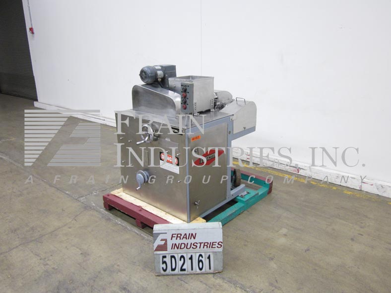 Back to All Equipment316 S/S variable speed hammer mill. Equipped with 16 blades, knife / impact, 4" auger feed screw, 12" x 12" feed chute and an 11" L X 6" chamber. Type 225 fixed 420 S/S blades w/reversible blunt or knife edge. Discharge height of 36".