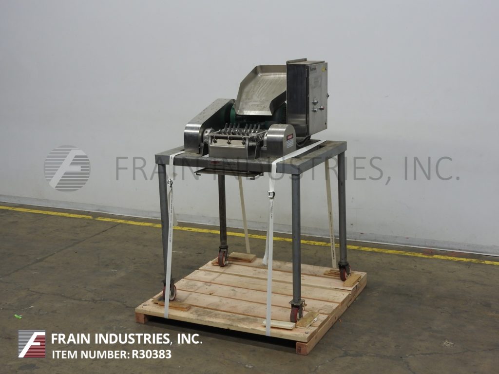 Back to All EquipmentFitzmill, Model DKAS012, stainless steel hammer mill with pounds of product per hour – depending on materials and application. Equipped with 20" wide x 24" long x 4" deep feed pan, (32) 3" long x 1½" wide fixed knife blades and 12" x 15" discharge with 45" of ground clearance. Mounted on (4) leg stainless steel frame with casters