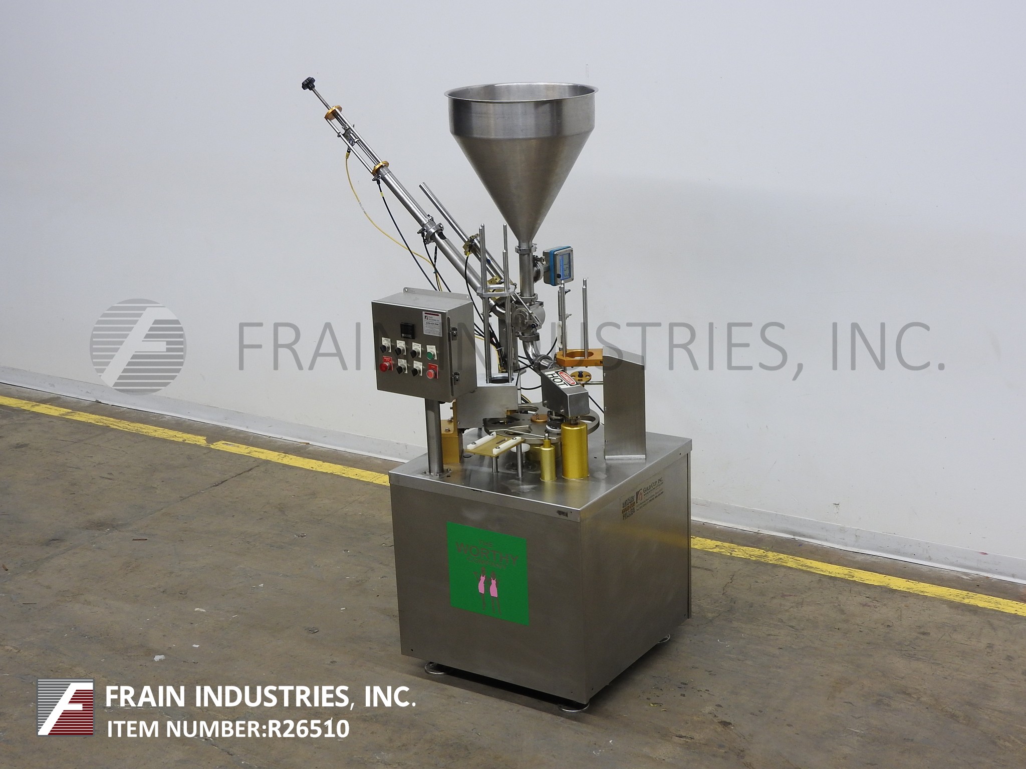 Back to All EquipmentGold Cup, Model GC6-16, automatic, stainless steel intermittent motion, rotary cup filler and heat sealer. Cup size: up to 4" in Diameter; up to 4-1/2" in Height. Fill range: 1/2 oz to 8 oz. Equipped with a 6 pocket 16" diameter turn table, cup denester, piston filler, pre-cut foil lid magazine, heat sealing head and sweep arm reject. Controller with start, stop, jog, fill, vacuum, on / off, temp heat seal and e-stop. Rated from 6 to 25 cups per minute – depending on materials, application, machine configuration and environment. Change parts required to accommodate size and fill ranges.