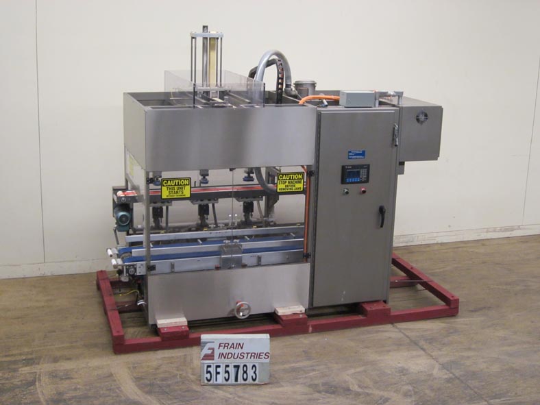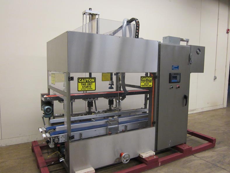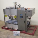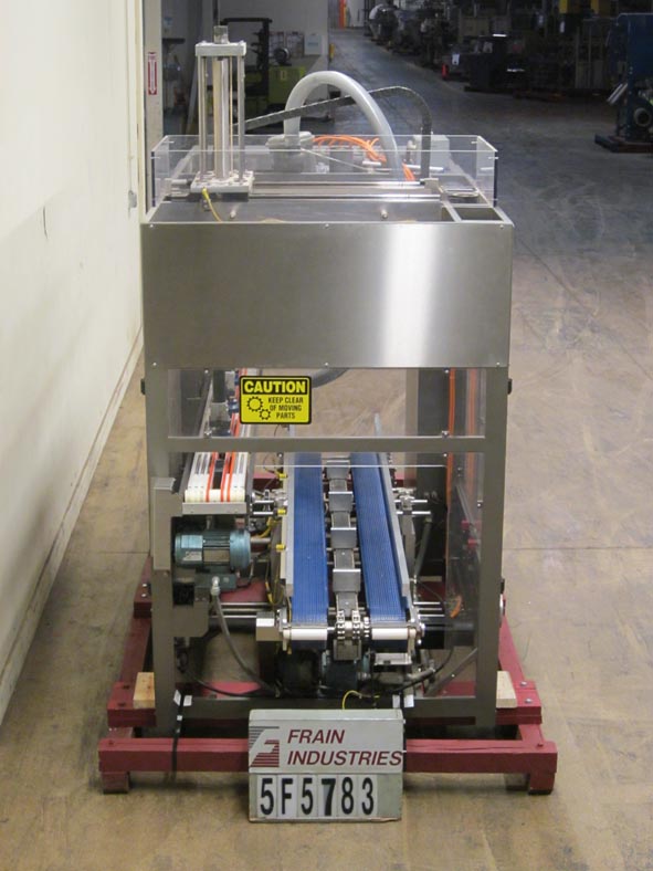 Goodman Packaging Equipment Universal 3, Automatic, intermittent motion, stainless steel, 4-axis robotic case packer rated up to 200 packages per minute – depending on materials and application. Erected Case Size Range: 8" to 24" in Length; 6" to 22" in Width; 1" to 14" in Height. Equipped with a 96" long x 16" wide three belt lugged case conveyor with adjustable width guide rails, 96" long x 8" wide eagle belt product conveyor with vacuum indexing system, three head robotic vacuum pick and place, 1 hp vacuum system, interlocking Lexan safety guarding, A/B PLC, and an A/B Panel View. Mounted on height adjustable legs.
