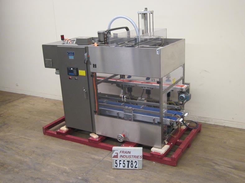 Back to All EquipmentGoodman Packaging Equipment Universal 3, Automatic, intermittent motion, stainless steel, 4-axis robotic case packer rated up to 200 packages per minute – depending on materials and application. Erected Case Size Range: 8" to 24" in Length; 6" to 22" in Width; 1" to 14" in Height. Equipped with a 96" long x 16" wide three belt lugged case conveyor with adjustable width guide rails, 96" long x 8" wide eagle belt product conveyor with vacuum indexing system, three head robotic vacuum pick and place, 1 hp vacuum system, interlocking Lexan safety guarding, A/B PLC, and an A/B Panel View. Mounted on height adjustable legs.