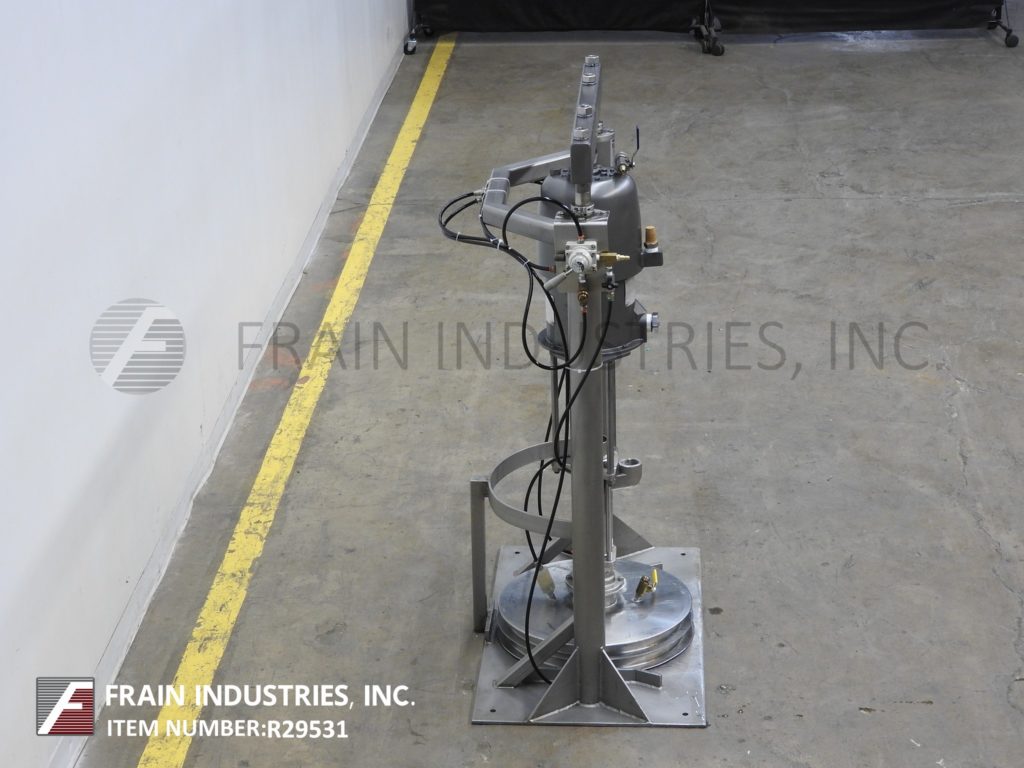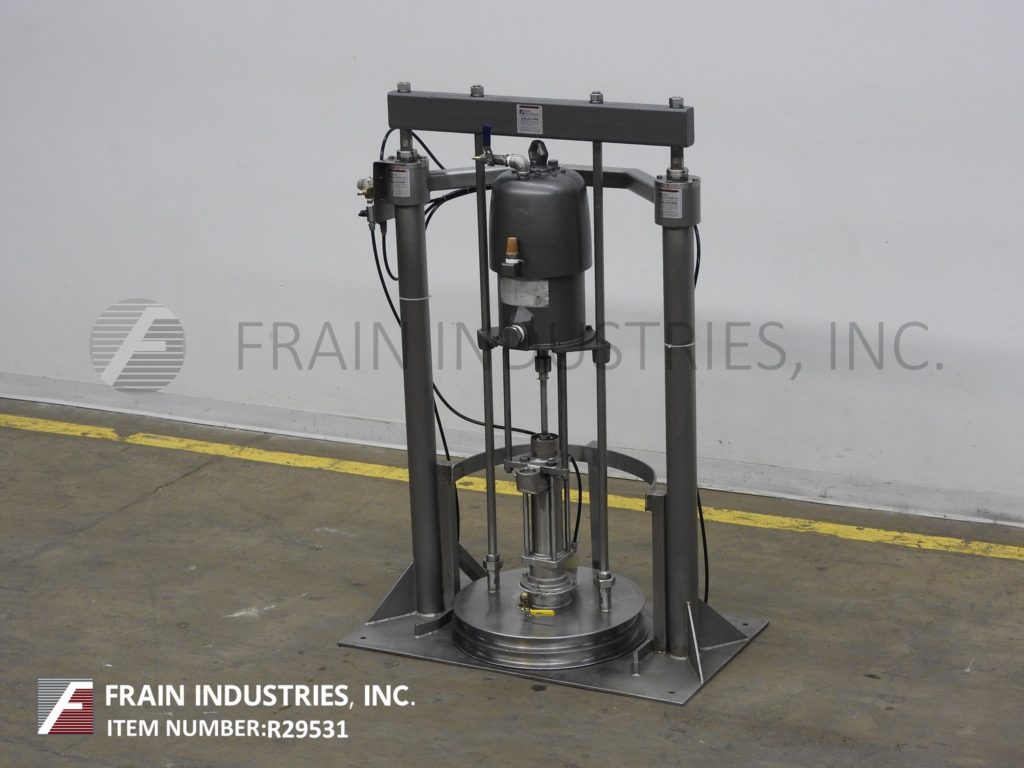 Back to All EquipmentGraco Model 946500 Power-Flo, 10:1 Ratio, stainless steel, drum pump rated up to 8 gallon per minute – depending on materials and application. Viscosity: up to 1,000,000. Maximum pressure rating: up to 1000 psi. (70) Bar, Operating temperature up to 160° F. Equipped with 22" OD drum follower plate, (1) 1" (1) 1-1/4" (2) 1-3/4" OD Threaded NPT air inlet, air control valve with gauge and 2-1/2" OD threaded discharge. Mounted on 34" long x 24" wide stainless steel platform frame.