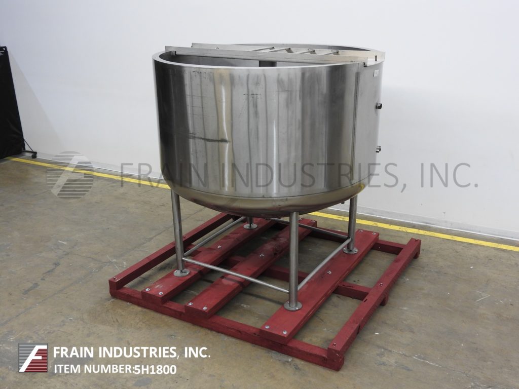 Back to All EquipmentHamilton, 750 gallon capacity, 304 stainless steel, low pressure jacketed kettle. Vessel dimensions: 72" diameter x 52" deep with 37" straight wall. Equipped with an open top, thermowell and 2½"OD / 2"ID Tri-Clamp style discharge with 18" ground clearance. Mounted on a (4) leg base.