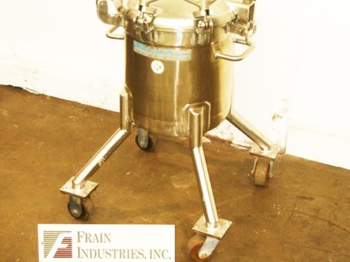 Back to All EquipmentHeritage Equipment, B Cast, 200 gallon capacity, 316 stainless steel jacketed dual purpose cooker, cooler. Vessel dimensions: 72" diameter x 34" deep with 17" straight wall and cone bottom. Equipped with lift up covers, 5.4 Hp bridge mounted scrape and 3 Hp prop agitator, 3½" OD / 3" ID Tri-clamp style bottom discharge with flow valve and 16" ground clearance. Mounted on (4) tube legs.