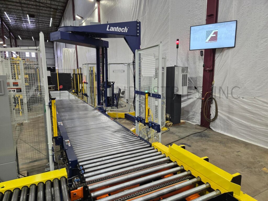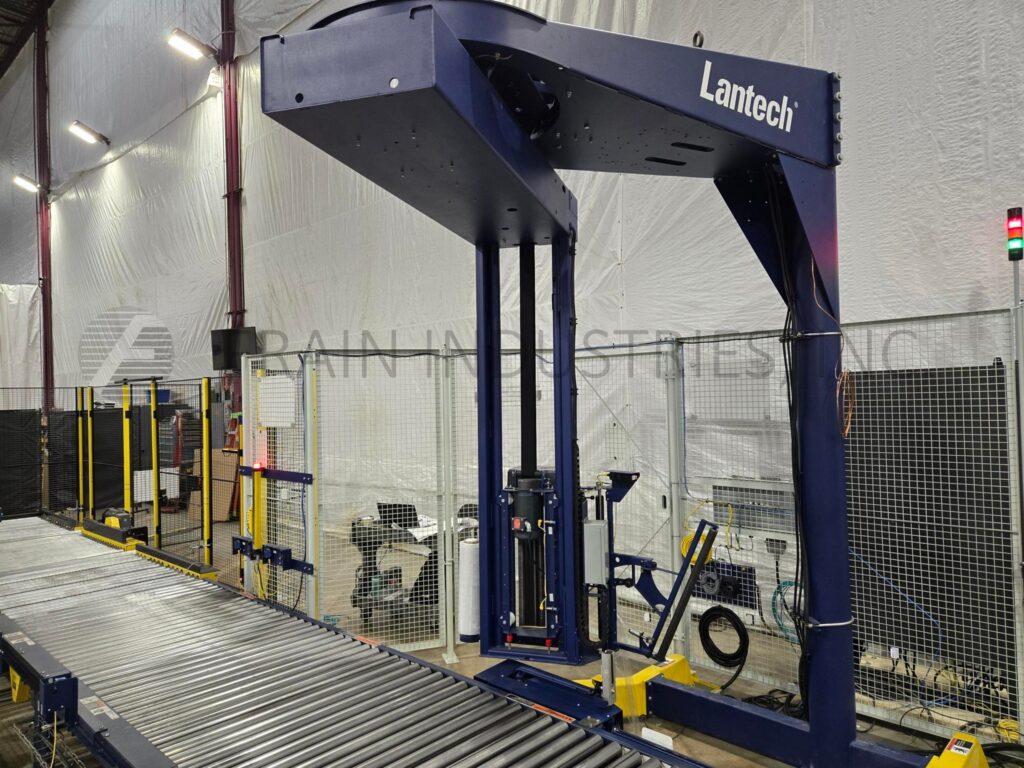 Back to All EquipmentLantech, Model SLC, automatic, overhead rotary stretch wrapper. Wrap diameter: 80". Load Size: 52" in Length; 48" in Width; 12" to 80" in Height. Equipped with EZ thread roll carriage, stretch plus wrap head, with 250% pre-stretch standard, scissor cut-off. Control panel has A/B PLC controller with touch screen HMI. Rate dependant on materials application and machine configuration.
