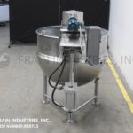 Back to All EquipmentLee Model 300-D9MT, 300 gallon, 316 stainless steel interior, 304 stainless steel exterior, 1/2 jacketed kettle with gallons of product per hour – depending on materials and application. Equipped with 44" OD x 44" Deep mixing bowl, dual flip top covers, bridge mounted scrape surface pnuematic tilt out agitation, with (1) 4-5/8" OD and (2) 2" OD sanitary top ports. 1/2 jacket with MAWP of 90 psi @ 332 Deg F and MDMT -20 Deg F @ 90 psi with (2) 2-1/2" ID threaded jacket inlet / outlet ports. Dish bottom has 5" OD center bottom discharge with bottom ball valve and 21" ground clearance. Mounted on (3) stainless steel tubular legs. National Board # 8633 and UL Rated.