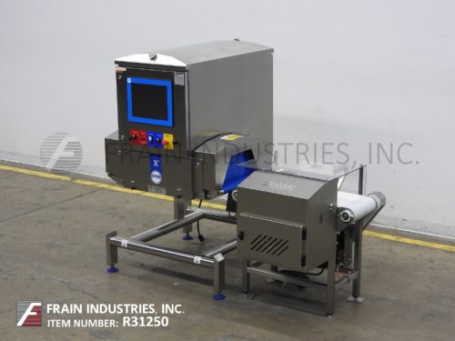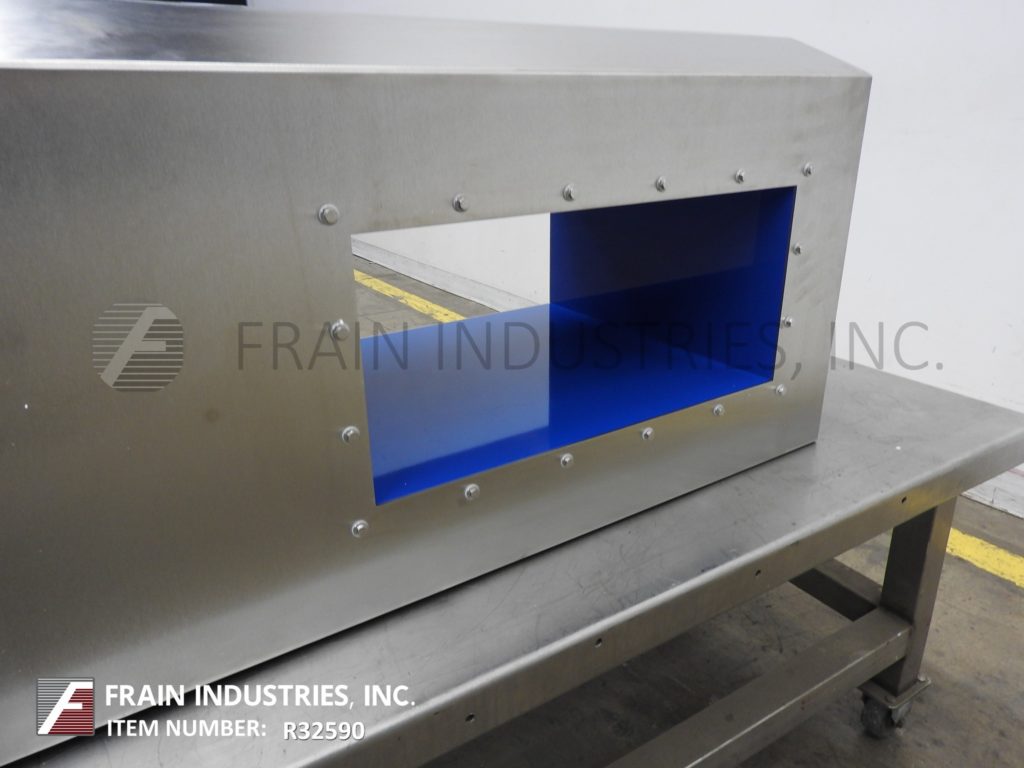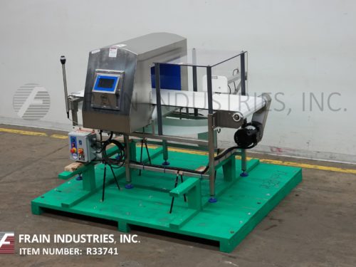 Back to All EquipmentLoma, Model IQ3, automatic conveyor through metal detector. Number of product per minute – depending on materials and application. Usable aperture: 6¾" in Height; 17¾" in Width. Equipped with 62" long x 16" wide Intralox belt conveyor, retracting nose reject and 35" infeed and discharge height. Sensitivities: depending on product, container and environment being run in. Control panel has touch pad operator interface with digital readout and start, stop, e-stop controls. Mounted on (4) leg base frame with leveling pads.