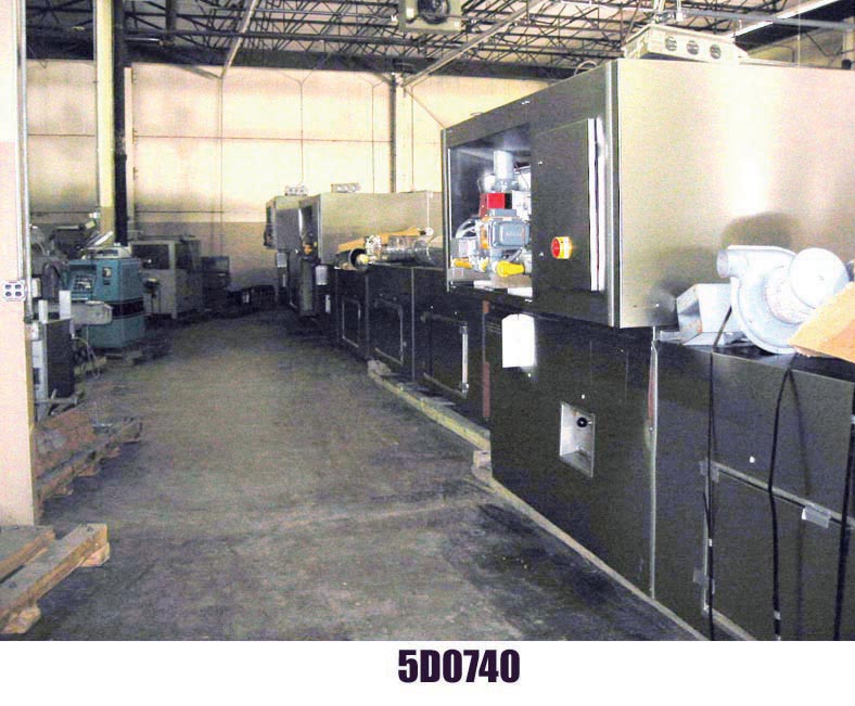 Back to All EquipmentMeinke Mdel 200, 4 zone, natural gas impingement oven. Design temperature to 650 degree F. Bake time from 0.5 to 5 minutes. Oven length of 92′. Conveyor length of 111′. Band working width of 48". Band to top 4.1". Humid air extraction rate 700 cfm per zone. Interior materials of construction are Corten steel. Exterior panels are polished stainless steel. High carbon steel wire mesh belt and Allen Bradley plc with Panel view 1200 display. Never used in production.
