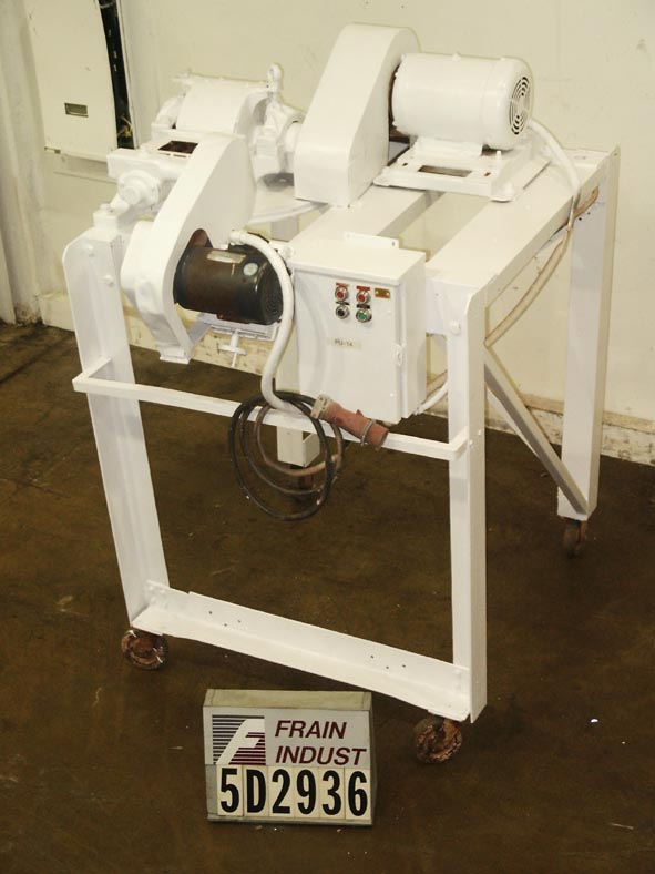 Back to All EquipmentMikron, Mikro Pulverizer, Model 2LH, hammer mill with production rates per hour – depending on materials, application and machine configuration. Carbon steel contact parts. Equipped with 6" x 3½" feed throat, (3) 1½" OD feed augers powered by 1 Hp motor drive and has (12) 6" wide swinging impact hammers powered by 10 Hp motor drive. Reduced product discharge is 25" OD with 50" ground clearance. Mounted on (4) leg frame with casters.