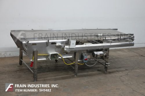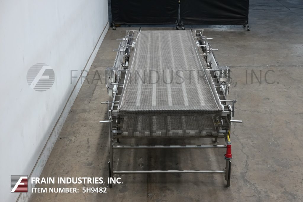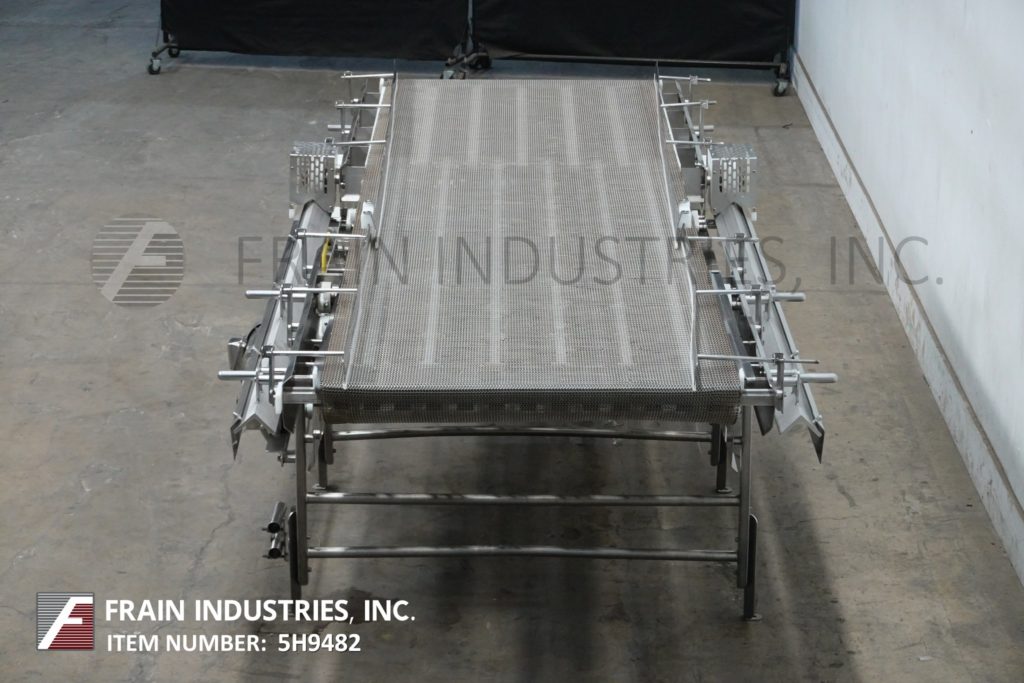 Back to All EquipmentNercon, 40" wide, stainless steel wire mesh belt conveyor with an adjustable length range of 108" to 148" long. Equipped with a 1HP drive and mounted on stainless steel legs with an infeed and discharge range of 38" to 44".