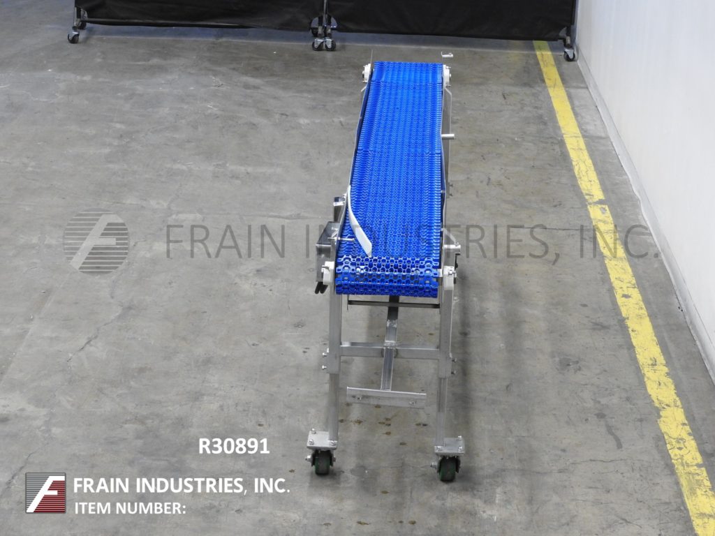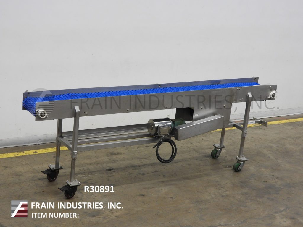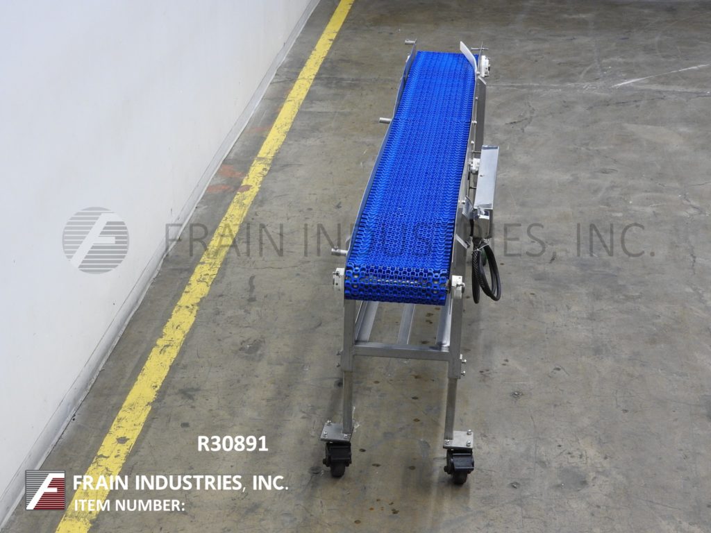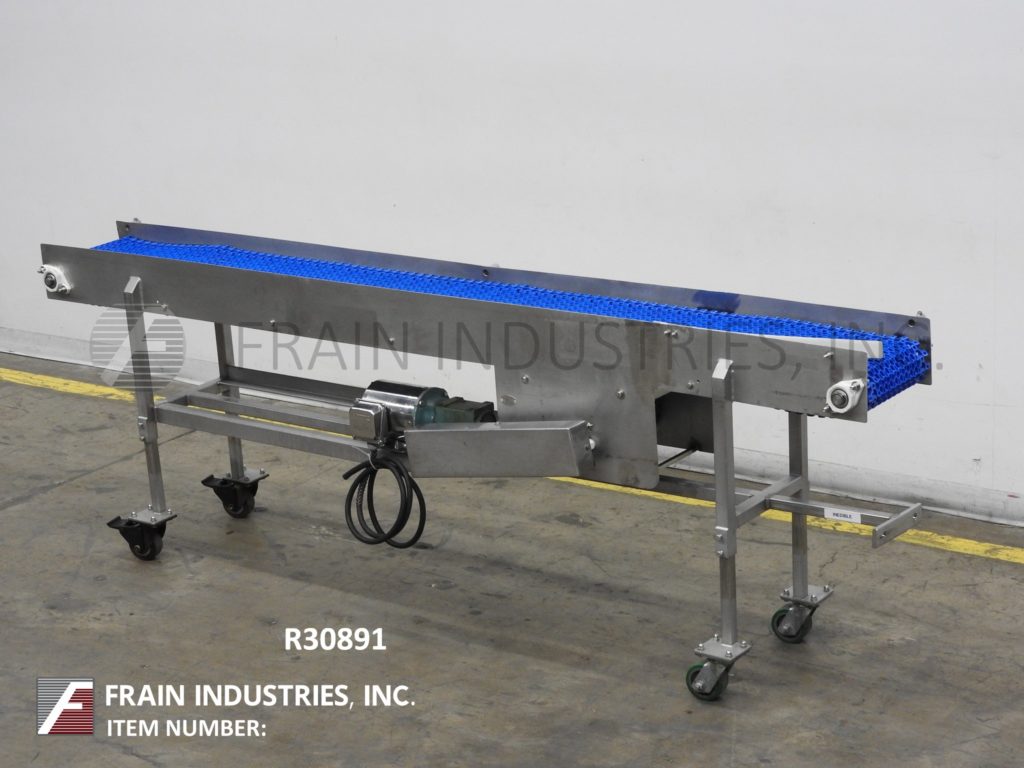 Back to All EquipmentNercon, stainless steel, 12" wide x 108" long conveyor. 12" wide and 108" long Intralox belt has an infeed / discharge range of 22" to 30". Equipped with a ½ Hp drive and mounted on (4) legs with casters.