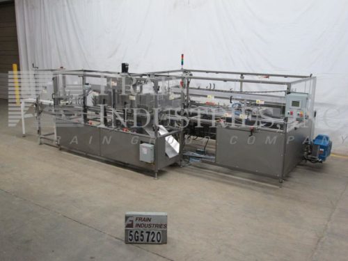 Back to All EquipmentOcme, Model Altair N 50, Automatic, inline, wrap around case packer/tray packer and hot melt glue sealer, rated up to 50 cartons per minute – depending on materials and application. Carton size range: Per application. Capable of packing bottles, cans, jars, canisters and small packages made of plastic, glass and metal, in round, square, oval, triangular and other container shapes and sizes with proper change parts. Can handle various products such as lube oils, edible oils as well as beverage products. Equipped with (3) chains adjustable set on 36" centers and 3" high lugs, 41" wide x 132" long product in feed conveyor with lane divider and squaring device, 96" long auto blank case magazine, 56" long carton despenser and feed ramp carton inserter, top product assist conveyor and Nordson hot melt glue system with wrap station and compression discharge. Remote control panel has PLC controller with OCME swing arm controls and digital readout. Mounted on heavy duty frame with interlock safety guarding.