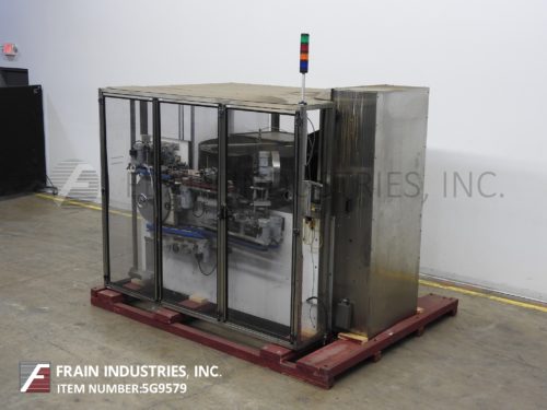 Back to All EquipmentPace, Model M600LH / BAO5500, automatic, stainless steel, compact, bulk plastic bottle feeder, unscrambler and orienter. Rated from 20 to 500 containers per minute – depending materials, application and machine configuration. Container size range: 0.8oz (25mL) to 2.5 gallon (9.5L) and capable of handling variety of sizes and shapes with proper change parts. Equipped with 59" wide x 100" long x 38" deep live bottom bottle hopper with 16" wide bottle elevator with 2" high cleats on 12" centers, 60" OD container sorting bowl, single hook arm container upender, (4) sets of dual belt container transfer system all 1" wide and 8" long belt orienter section. Control panel with AB controller and touch screen HMI.