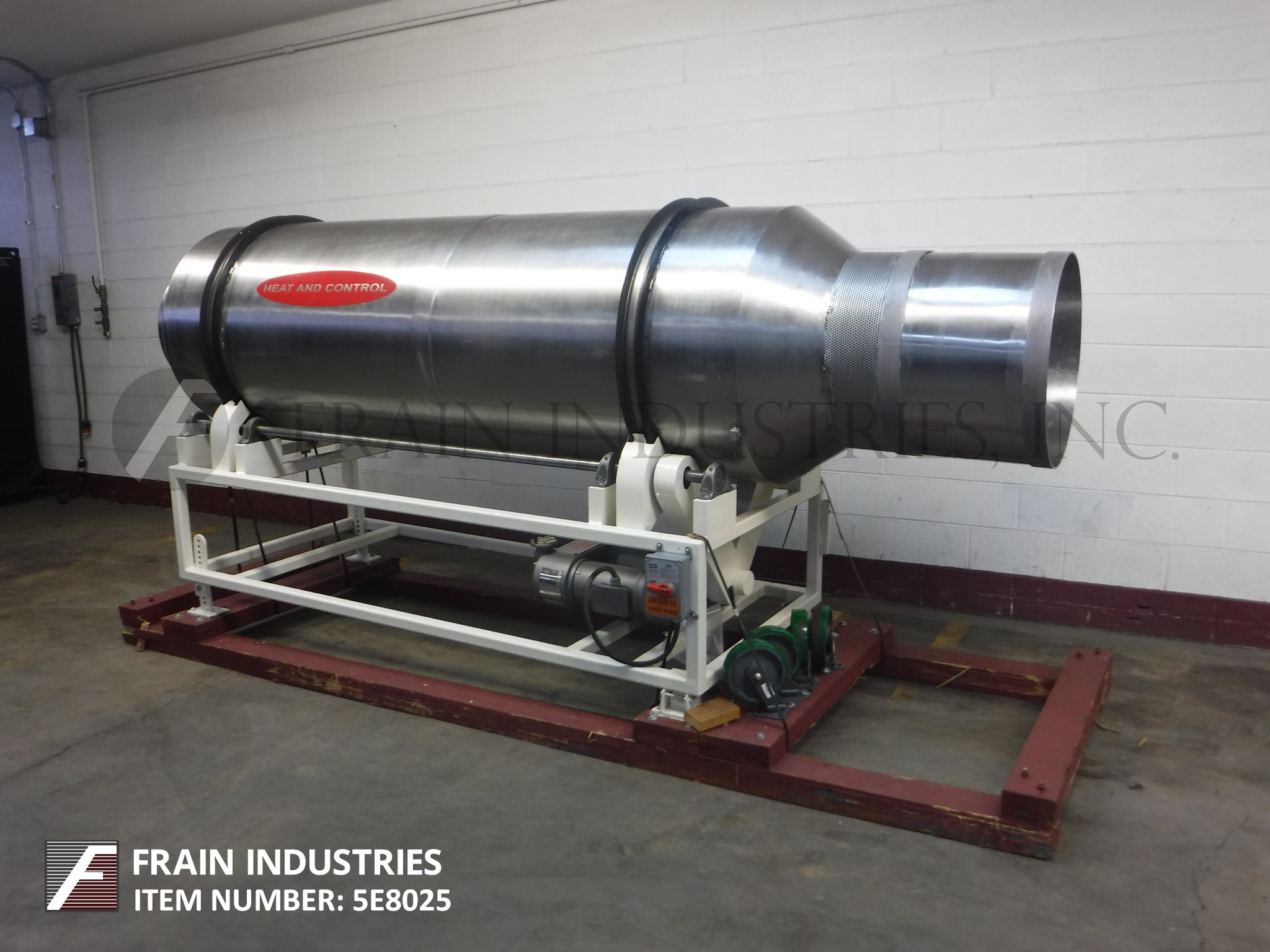 Back to All EquipmentContinuous, S/S, cylindrical drum for coating has a 36" ID x 102" L coating chamber, (4) 1"H baffles, 24" OD product infeed / discharge with 40" floor clearance, and a 1.5hp drive. Mounted on a common base frame.