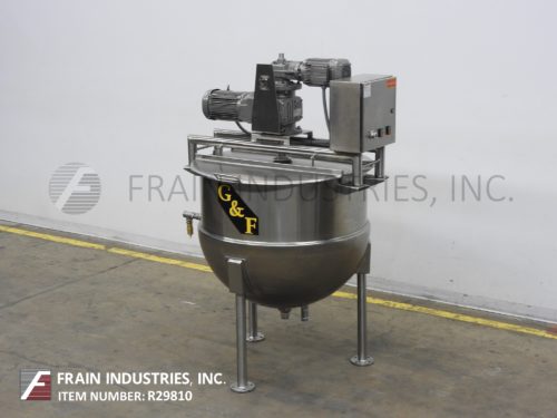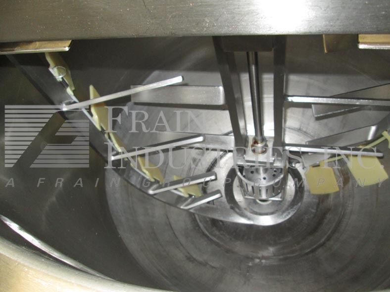 Back to All EquipmentLee Model 75DT12T, 75 Gallon, 316 stainless steel, full jacket,Tri-mixer with volumes of product per hour – depending on materials and application. Bowl dimensions: 32" ID; 38" in Depth. Equipped with flat top, bridge mounted hydraulic tilt out, counter rotating agitation with side / bottom scrape has center mounted high shear mixer and dual flip up covers with safety grids and micro safety switches. Full jacket rated at MAWP of 90 psi @ 332 Deg F and MDMT of -20 Deg F @ 90 psi threaded side and bottom jacket in / outlets and flush mount pressure gage. Dish bottom has 2" OD center bottom sanitary discharge with 4" floor clearance, Control panel has double motion, high shear, tank light, power on / off and e-stop controls with speed dials and chart recorder. National Board # 5395