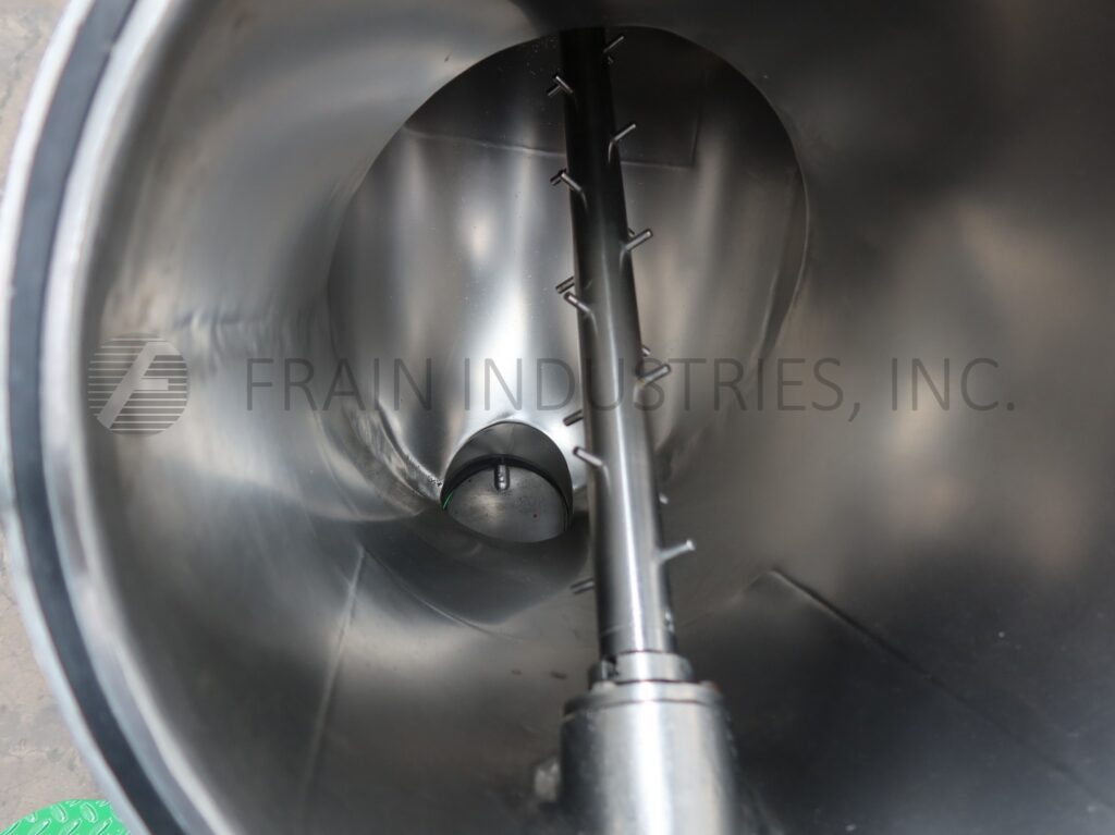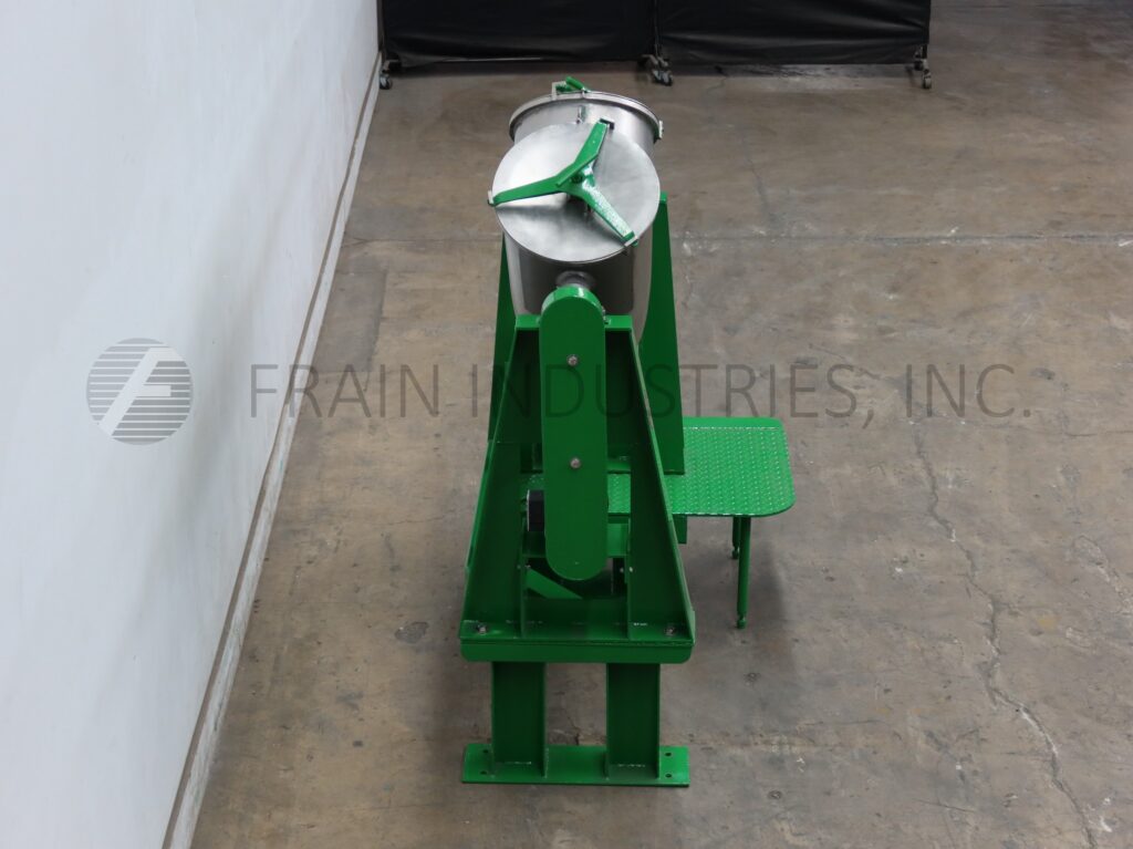 Back to All EquipmentPatterson Kelley, Model 3 ft³, 304 stainless steel twin shell mixer. Rated up to 125 lbs per ft³ – depending on materials and application. Equipped with (2) 16" ID product ports, 26" long outer V-Walls and 12" long inner V-Walls, pin bar agitation powered by a ¾ hp drive and 6"ID discharge with 37" ground clearance. Shell powered by a ¾ Hp motor drive. Requires 80" ceiling clearance with a 21" swing radius / 42" swing diameter. Mounted on painted base frame.