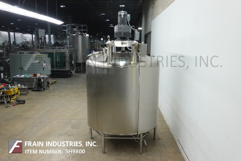 Back to All EquipmentAB Process, 2000 gallon capacity, 304 stainless steel jacketed process tank. Vessel dimensions: 90" diameter with a 80" straight wall. Equipped with a dome top with a 20" diameter top hinged man way, (2) CIP spray balls supplied by a 2½"OD / 2"ID Tri-clamp fitting, 15 Hp top mounted scrape agitator, dish bottom with 3"OD / 2½"ID Tri-clamp discharge with 10" ground clearance and pneumatic ball valve.