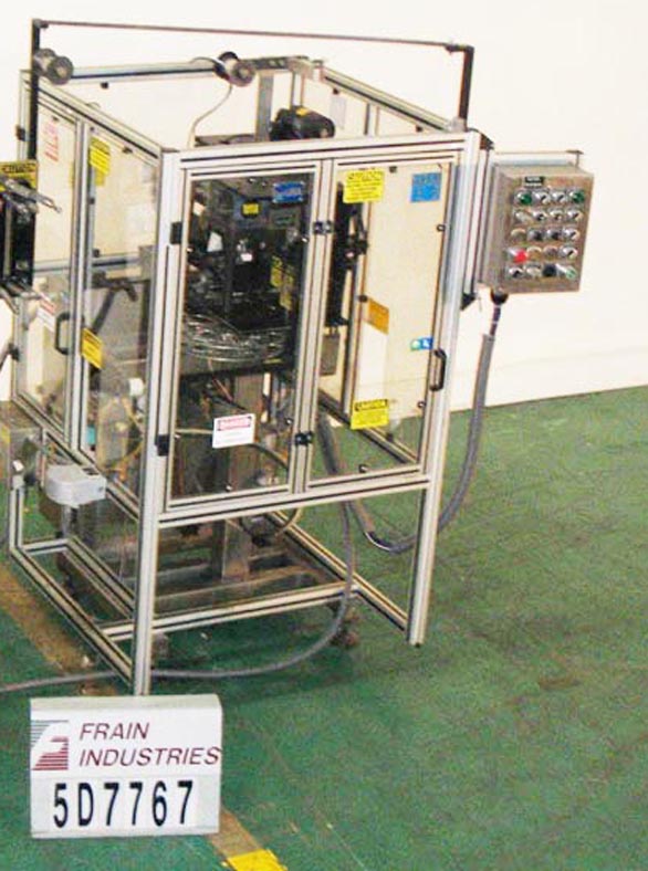 Back to All EquipmentPDC Model 65-ER, Eight station rotary tamper evident neck bander / sleever labeler rated from 50 to 200 neck bands and 50 to 175 sleeves per minute – depending on materials and application. Band / Sleeve size range: 3/8" to 3-1/4" in diameter; 5/8" to 6" in Height. Equipped with 24" worm screw in feed, vertical perforation, 8 station rotary band placer, registration, static elimination, low film indicator, powered film feed drive, splicing table, material out sensor, E-stop, and barrier guarding. Mounted on stainless steel frame with height adjustable feet. Machine to be mounted above conveyor.