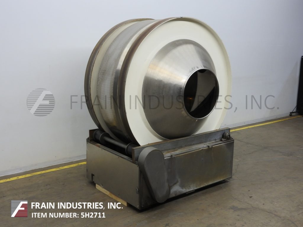 Back to All EquipmentPellegrini, 84" Diameter, stainless steel, coating pan. Equipped with 84" diameter x 74" deep pan with (6) 12" high baffles, (2) 28" diameter access ports, removable discharge chute and 35" diameter x 26" deep discharging hopper. Control panel with variable speed controls, timer and forward / reverse switch.