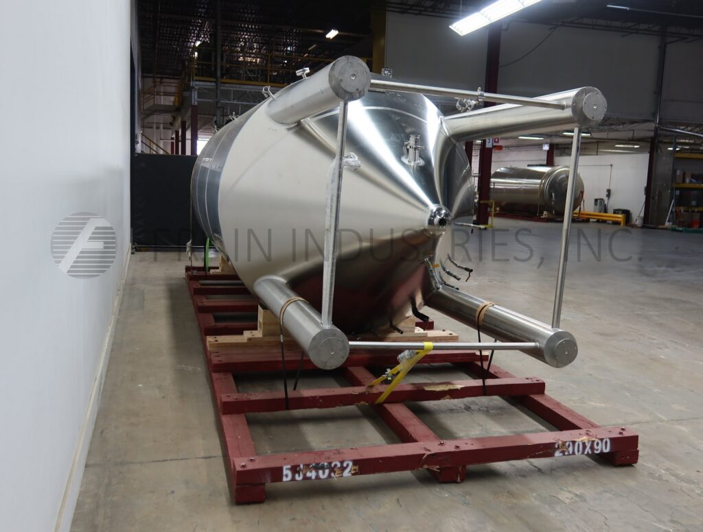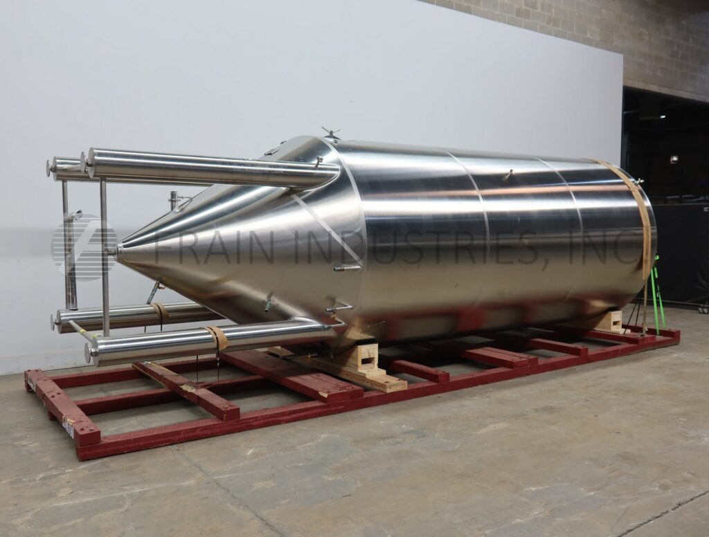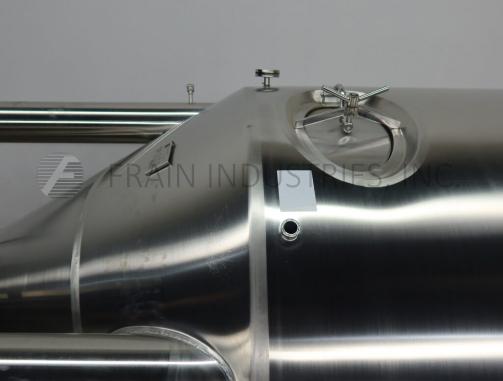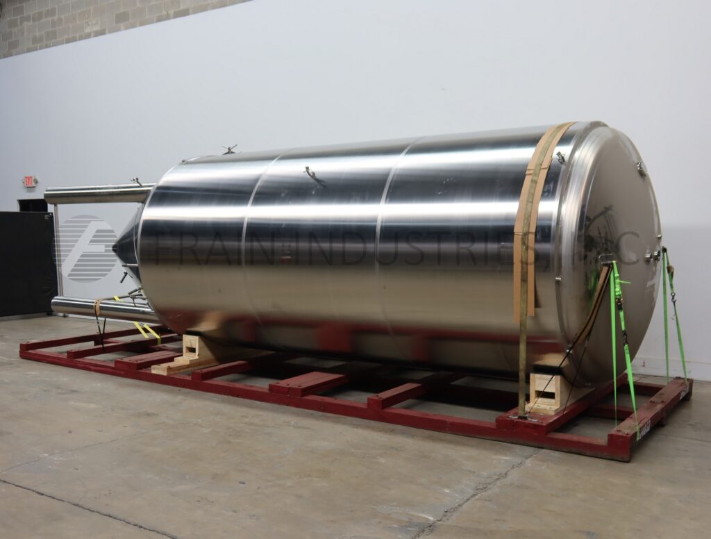 Back to All EquipmentProspero / SK SKRLJ, 4,800 gallon, 304 stainless steel, jacketed and insulated tank. Vessel Dimensions: 83" diameter x 163" straight wall with a cone bottom. Equipped with 12" x 17" side manway with bolt down cover, (2) thermowells and 2" Tri-clamp discharge with 6" ground clearance.
