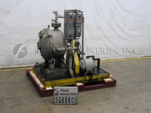 Back to All EquipmentRoss Model CDA50 vertical jacketed mixer with gallons of product per hour – depending on materials and application. 304 stainless steel with 65 gallon total and 50 gallon working capacities. Equipped with full vacuum up to 29.50 Hg, jacketed pressure rated up to 100 psi. with variable high speed, independently driven, high speed hear homogenizing and scrape surface agitation. Has 3-1/4" sight port, temperature probe and 2" ball valve discharge and vacuum pump. Start, stop and e-stop push button controls.