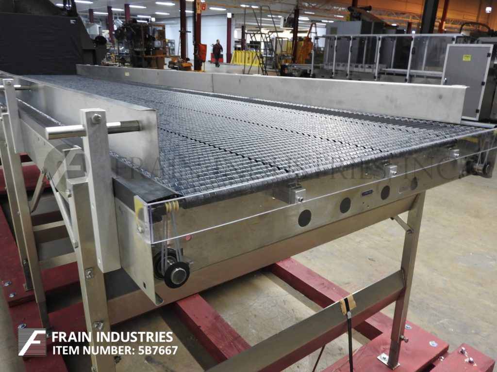 Back to All EquipmentShuttleworth, Stainless steel accumulation table has 21mm standard pitch rollers. Unit measures 177-1/2" long x 40" wide x 36-1/2" high. Slip-Torque conveying system has individually powered roller shafts. Unit will automatically adjust the driving force in proportion to the weight of the product being conveyed. As the product accumulates, the rollers beneath stop to avoid jamming, scuffing, shingling or other product damage.