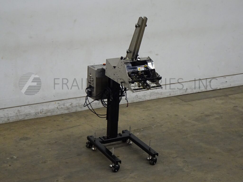 Back to All EquipmentStreamfeeder, Model P-1250, Automatic, card and coupon feeder, with product speed up to 14,000 per hour based on CR-80 at + / – .125" tolerance – depending materials, application and machine configuration. Product size range: 2½" to 14" in Length; 2" to 10½" in Width; 0.003" to 1" Thick. Equipped with 24" high coupon magazine, feed transport belts and trigger sensor eye. Control panel has touch pad controls with readout and start, stop push buttons. Mounted on base stand with casters and leveling legs.