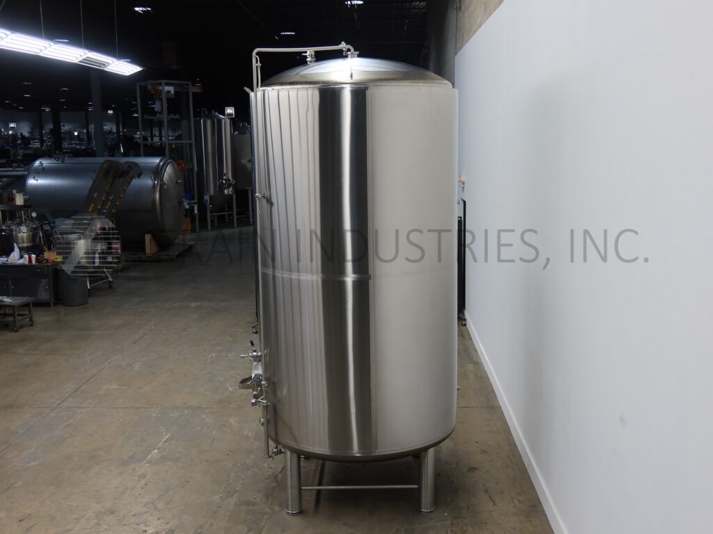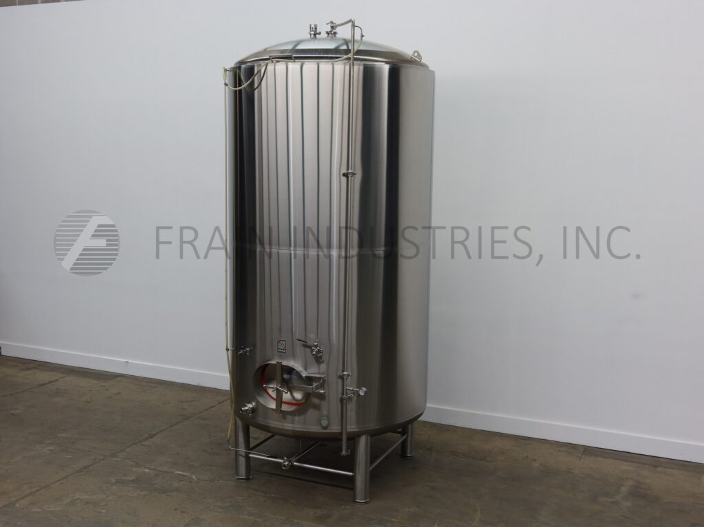 Back to All EquipmentSaaz, 2000 gallon, 304 stainless steel, low pressure jacketed and insulated tank. Vessel Dimensions: 70" diameter x 120" straight wall with a dish bottom. Equipped with 15½" x 20½" side manway with bolt down cover, (2) thermowells, CIP spray ball supplied by a 2"OD / 1"ID Tri-Clamp fitting, top pressure releif valve and 2"OD / 1½"ID Tri-clamp style bottom fittings with 11" ground clearance.