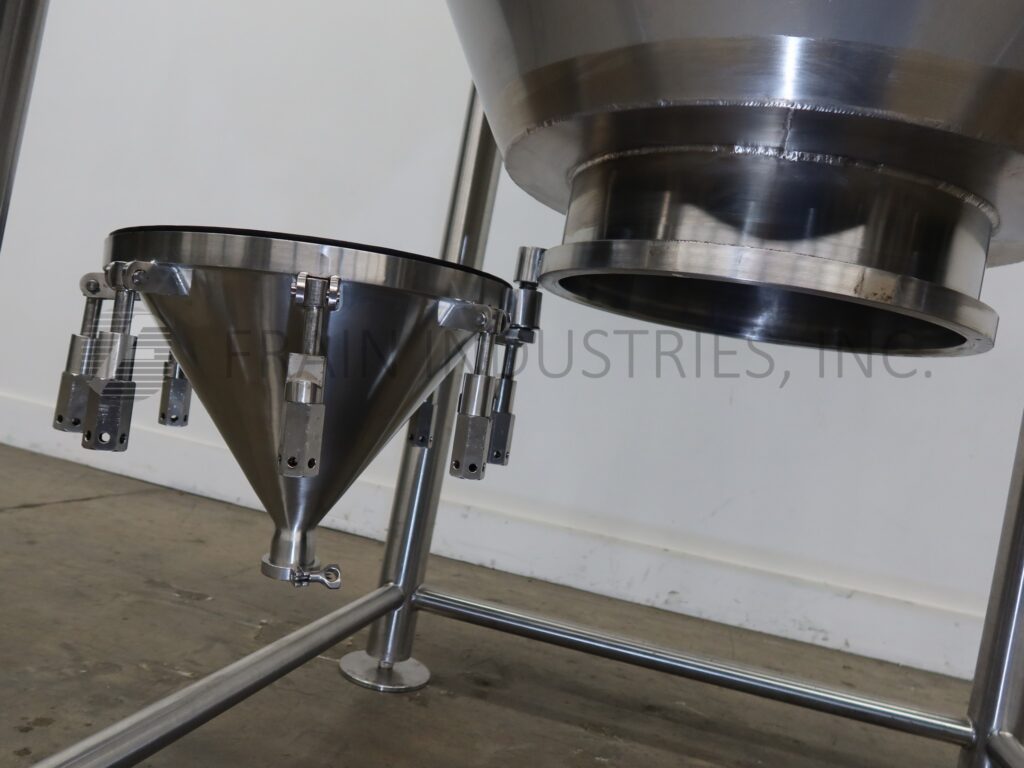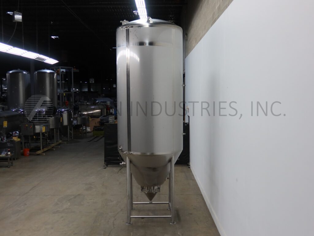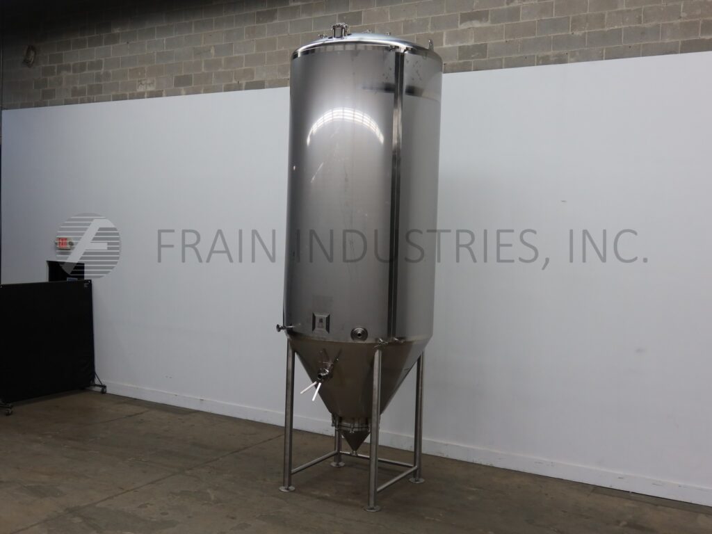 Back to All EquipmentSprinkman, 1,705 gallon, 304 stainless steel, jacketed tank. Vessel Dimensions: 60" diameter x 120" straight wall with a cone bottom. Equipped with a thermowell and bottom cone manway with bolt down cover. 2" Tri-clamp discharge with 14" ground clearance.