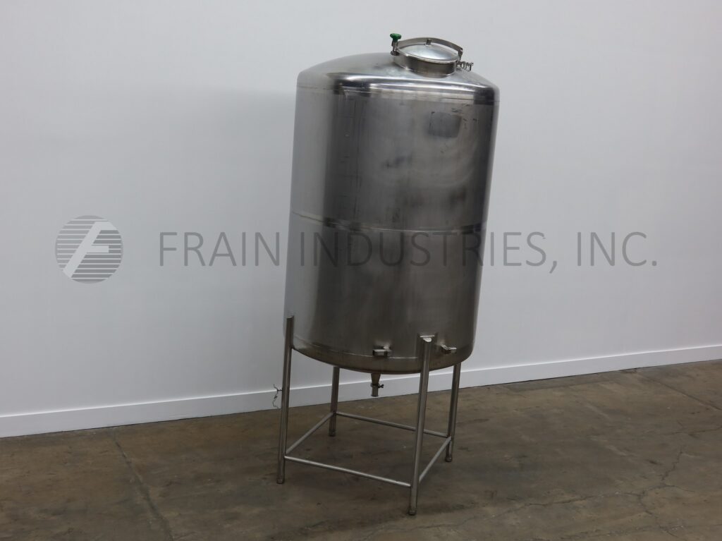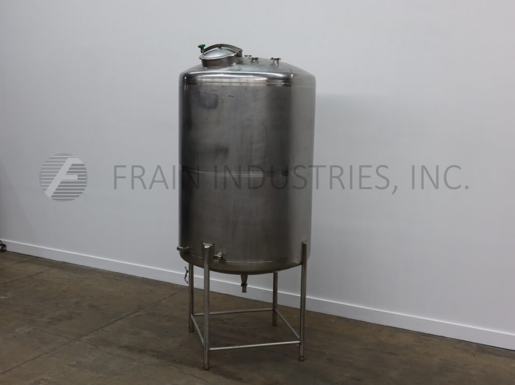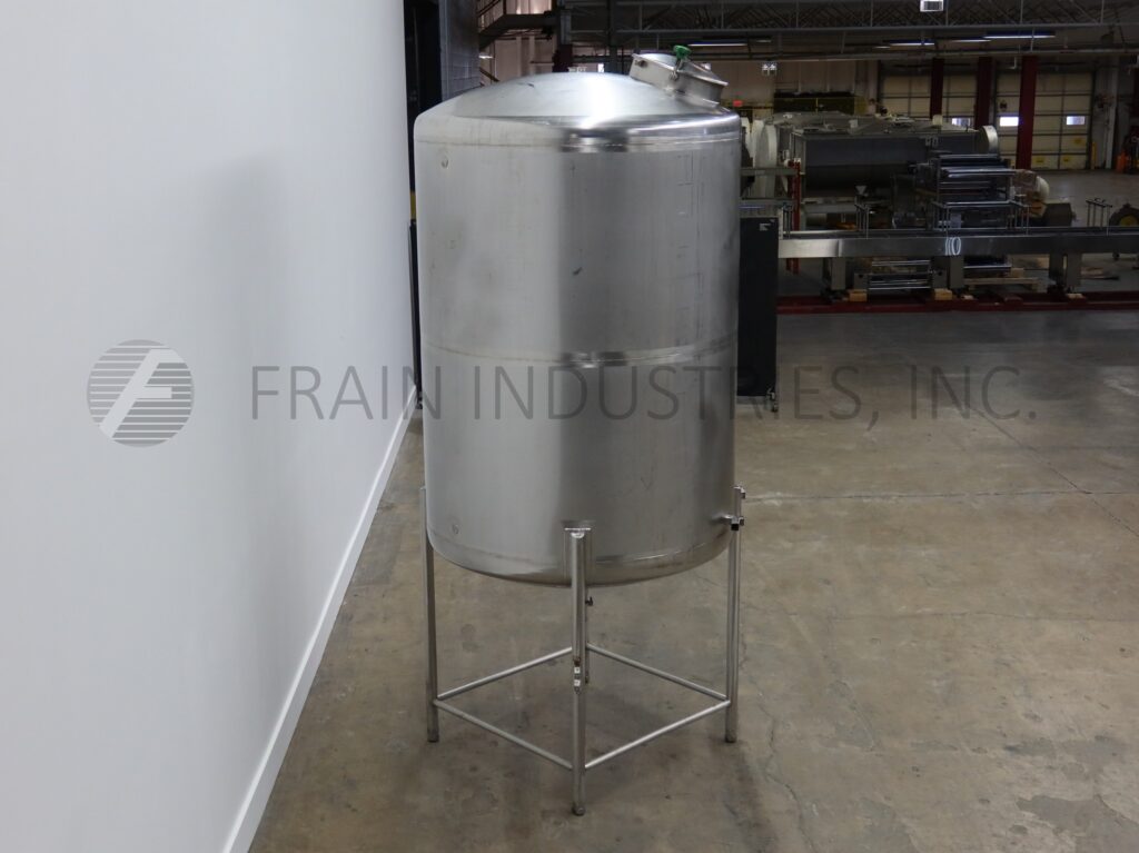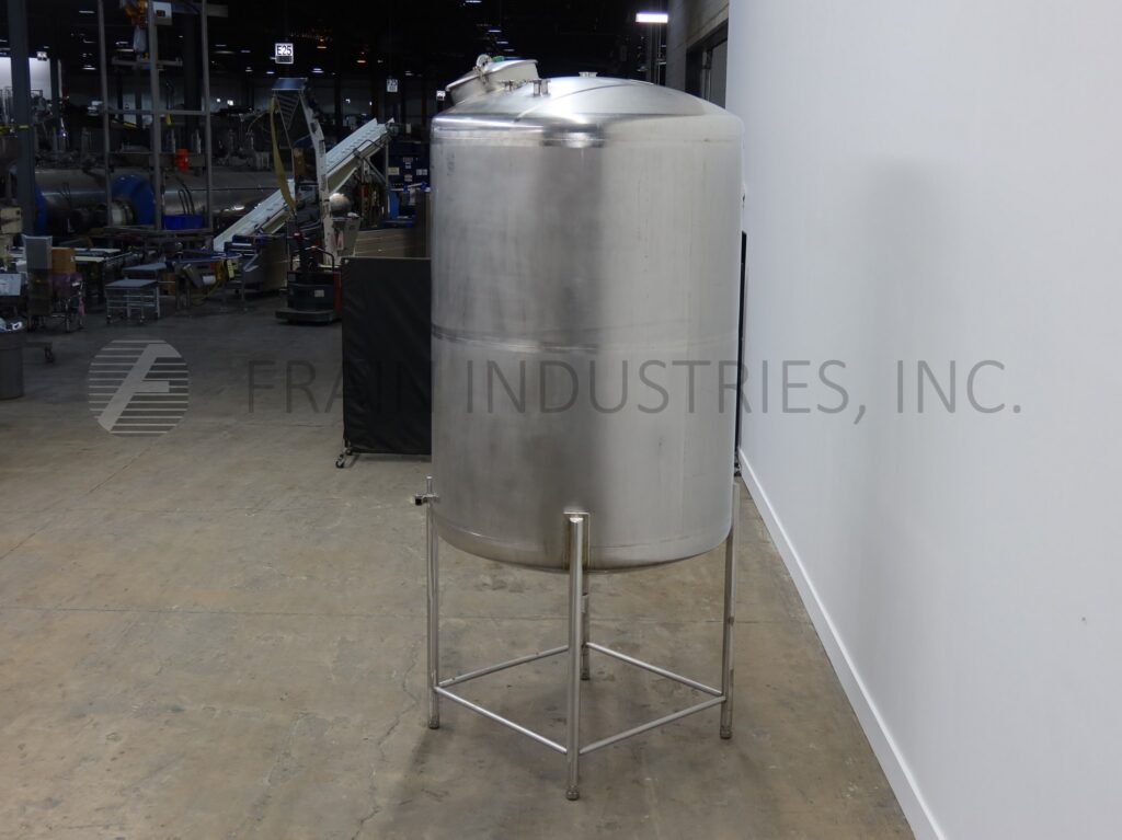 Back to All Equipment1000 gallon capacity, 304 stainless steel tank. Vessel dimensions: 60" diameter with 77" straight wall. Equipped with dome top, 17" OD flip top man way. Dish bottom has 4½" OD / 4" ID tri-clamp discharge with 35½" ground clearence.