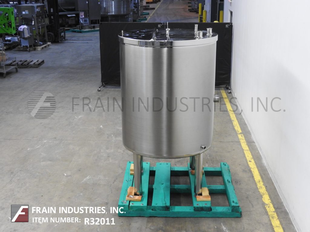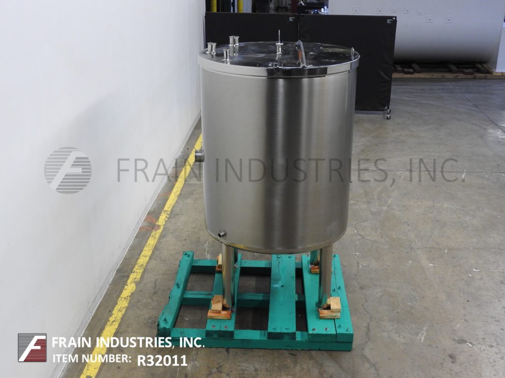 Back to All Equipment500 gallon, 304 stainless steel, single wall tank. Vessel Dimmensions: 50" diameter x 66" deep with a 60" straight wall. Equipped with 1/2 flip up cover and 3½"OD / 3"ID Tri-Clamp style center bottom discharge port with 16" floor clearance. Mounted on (4) legs.