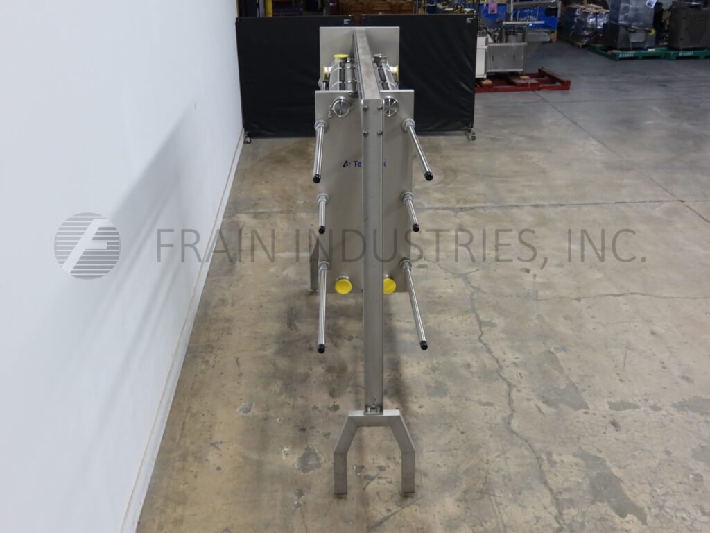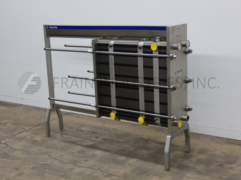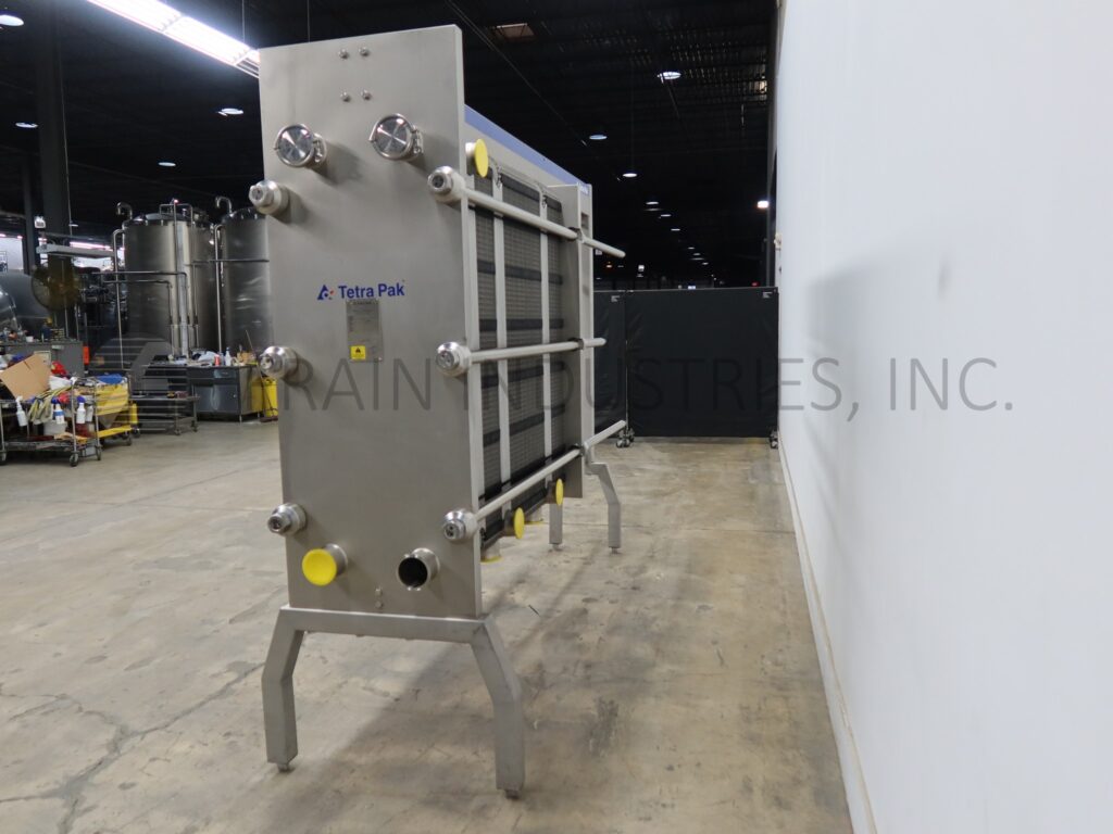 Back to All EquipmentTetra Pak, Model C10-KSH, stainless steel, plate and frame heat exchanger. 1655 total ft² heat transfer area. Equipped with (258) plates 58" in Length; 10" in Width; in (4) zones. (20) 4" ID Tri-Clamp style transfer ports. Mounted on stainless steel base frame.