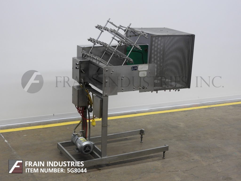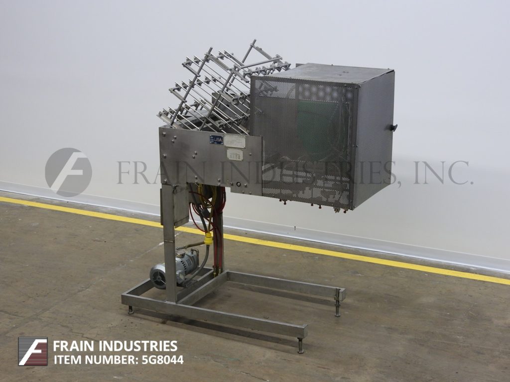 Back to All EquipmentThiele, semi-automatic, reciprocating feeder. Rated from 10 to 45 cycles per minute – depending on materials, application and machine configuration. Product size: 1½" to 22" in Length; 1½" to 22" in Width. Equipped with 18" long adjustable magazine, (27) vacuum suction cup pick n place, safety guarding and vacuum pump. Control switches for on / off, vacuum on / off and product pick / drop. Mounted on H style base frame.